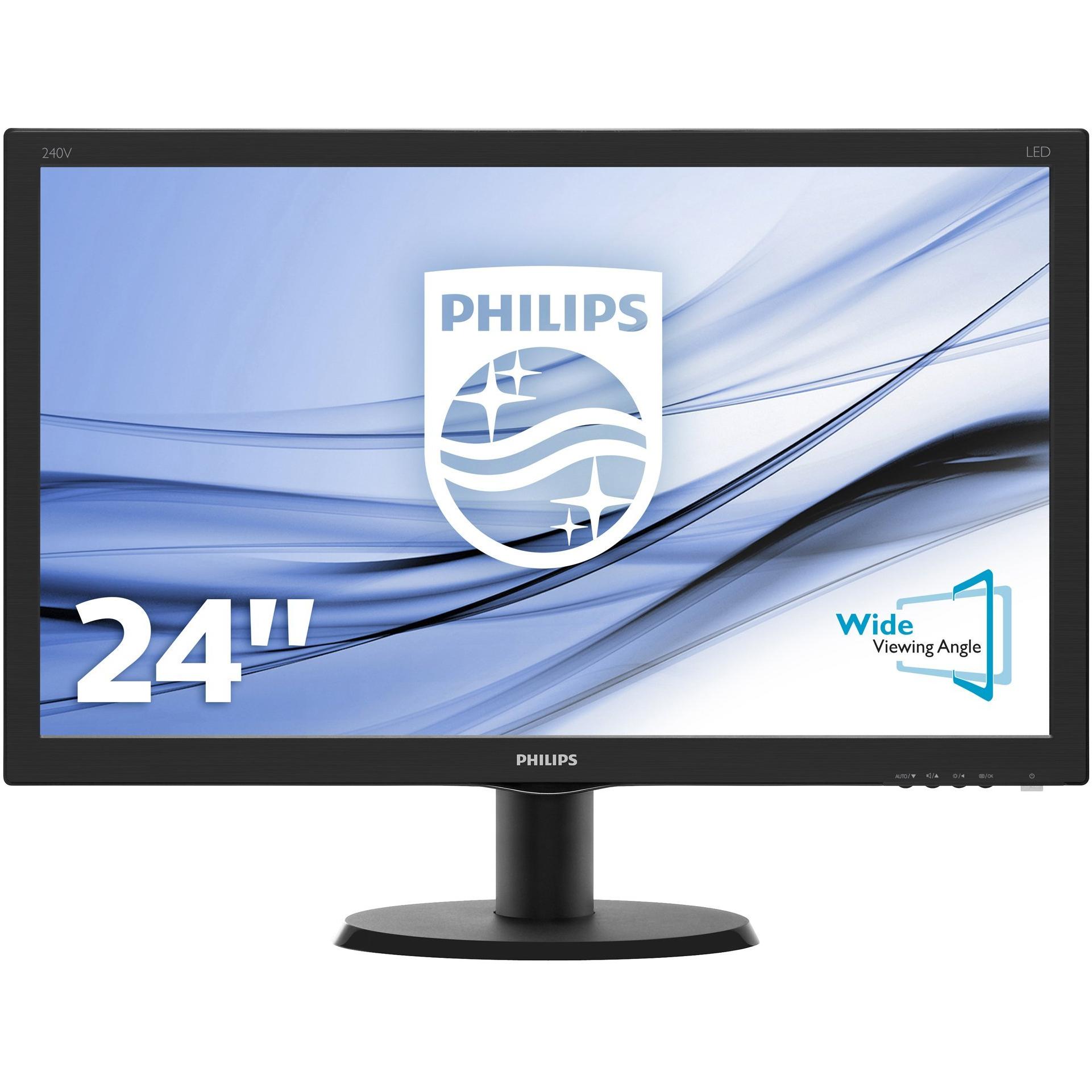 Philips 240V5QDAB Monitor LED IPS Full HD 1920 x 1080 5 ms HDMI DVI VGA Casse Audio Integrate Attacco VESA Nero