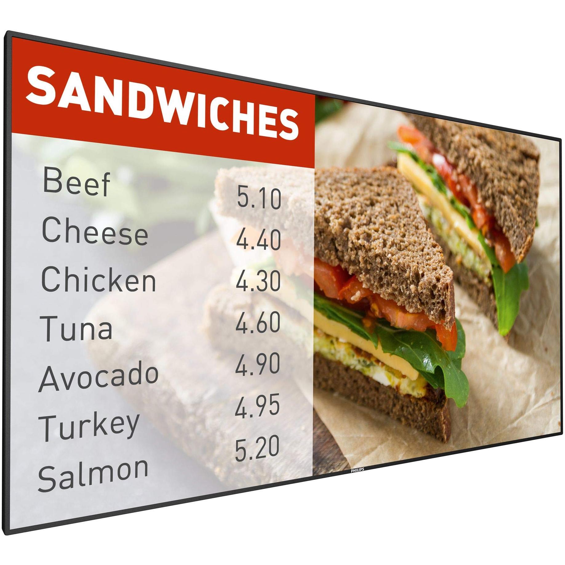 Schermo LED da 65 pollici con bordi sottili, alimentato da Android