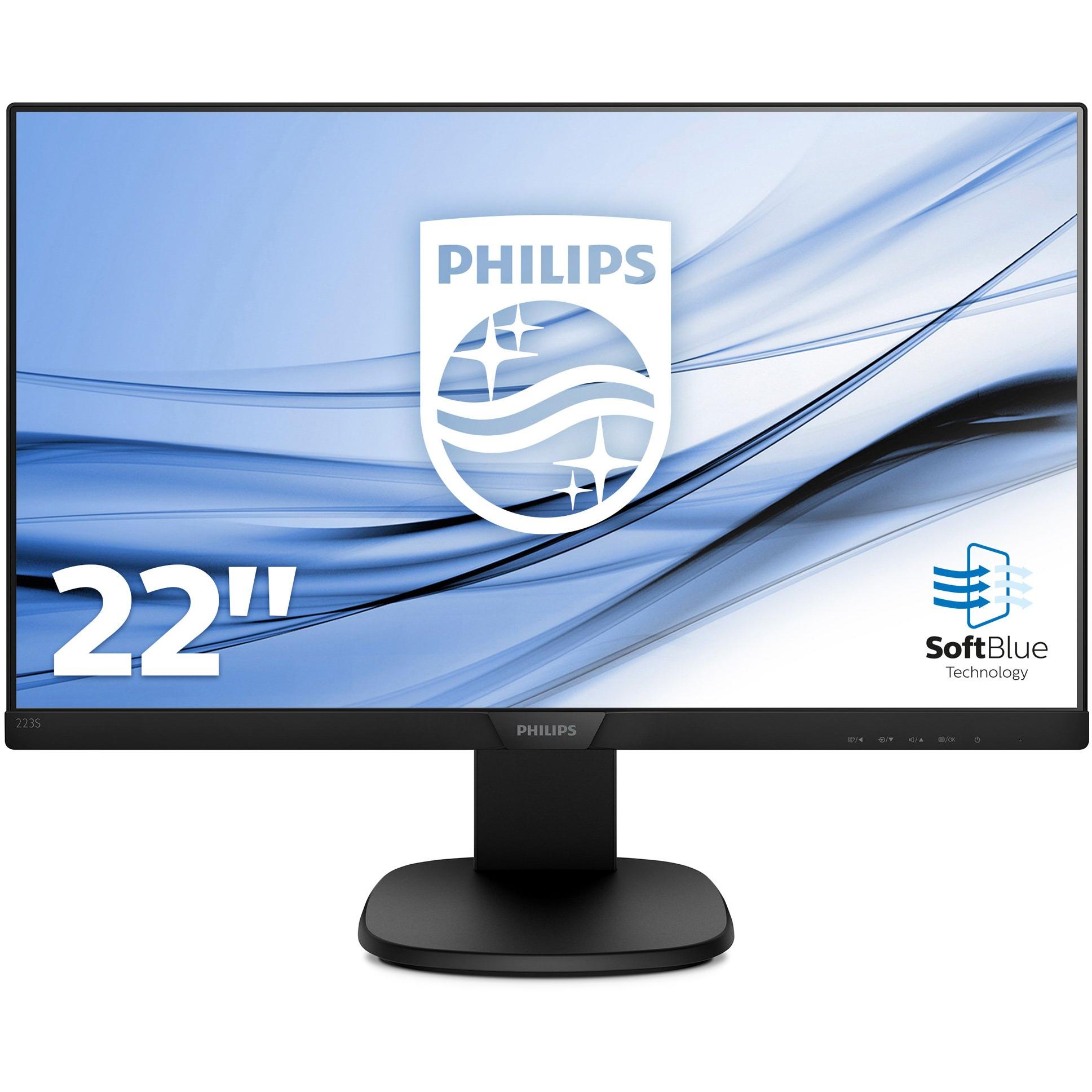 Monitor Philips 223S7EHMB offre un display LED IPS di 22″ con risoluzione Full HD, 5 ms e contrasto 1000:1; i due altoparlanti integrati forniscon ...