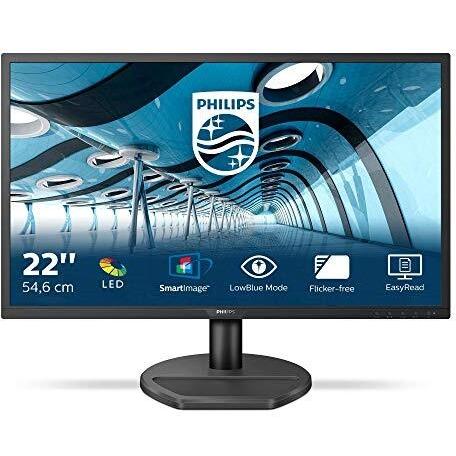 Monitor Philips 22” Full HD con schermo TN da 1 ms, angolo di visualizzazione 170°, altoparlanti integrati 2×2 W e modalità Low Blue Light pe ...