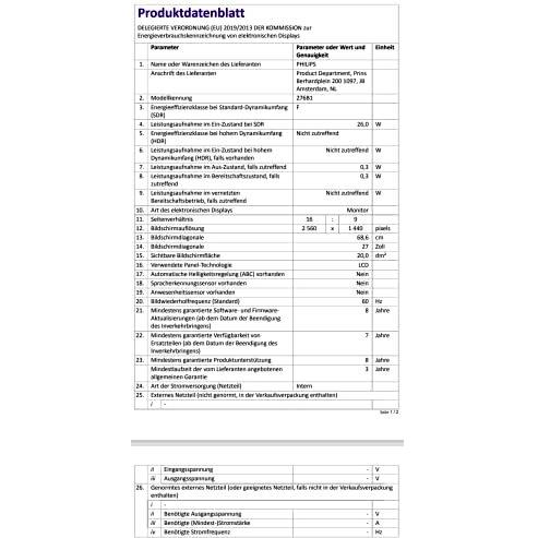 PHILIPS - 276B1/00 - 8712581764357 - B08KW7V78T - 36,6 cm - 180 - F - Nero - Separate sync - 26 kWh - 59.7 cm - 33.6 cm - 90 W - 30 - 48 - -5 - ...
