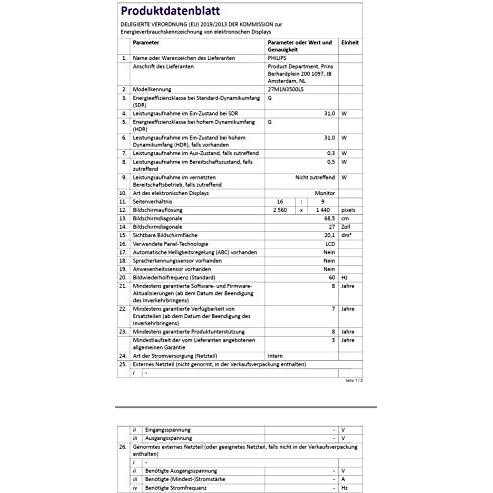 PHILIPS - 27M1N3500LS/00 - 8712581781163 - B09RZTVRC9 - 36,5 cm - G - Separate sync - 31 kWh - 95,6% - 87,5% - 126.5 % - 59.7 cm - 33.6 cm - 0,2331 x ...