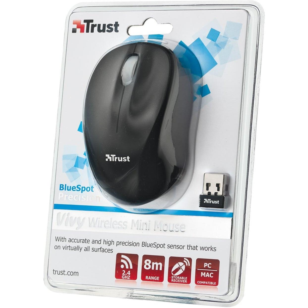 Mouse Trust Vivy Mini nero, ambidestro e ultraleggero da 88 g. Sensore a 800 DPI offre precisione per scrittura e gaming. Alimentato con batterie AA ...
