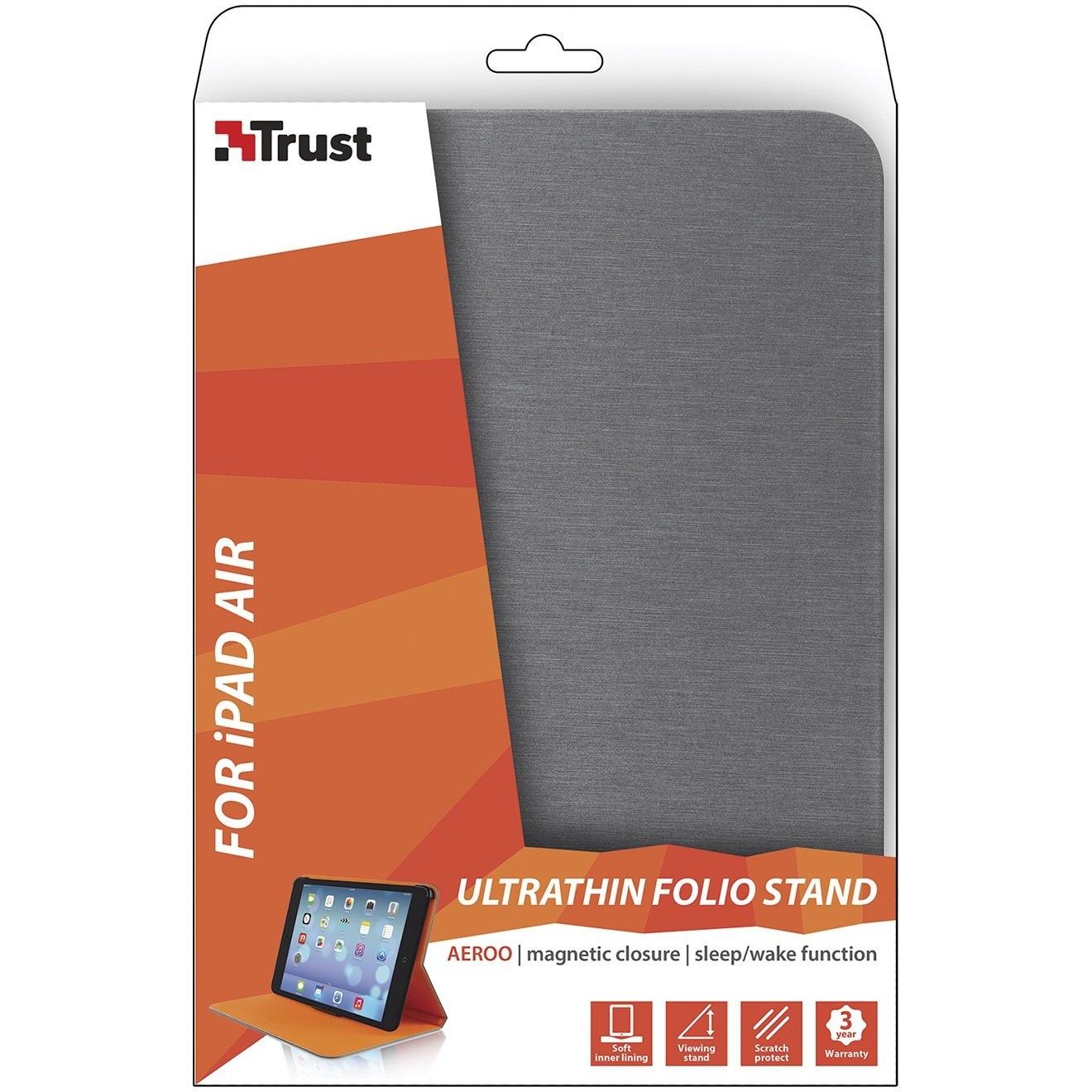 Custodia Trust Aeroo UltraSottile con Supporto Visualizzazione per iPad Air Grigio Arancio
