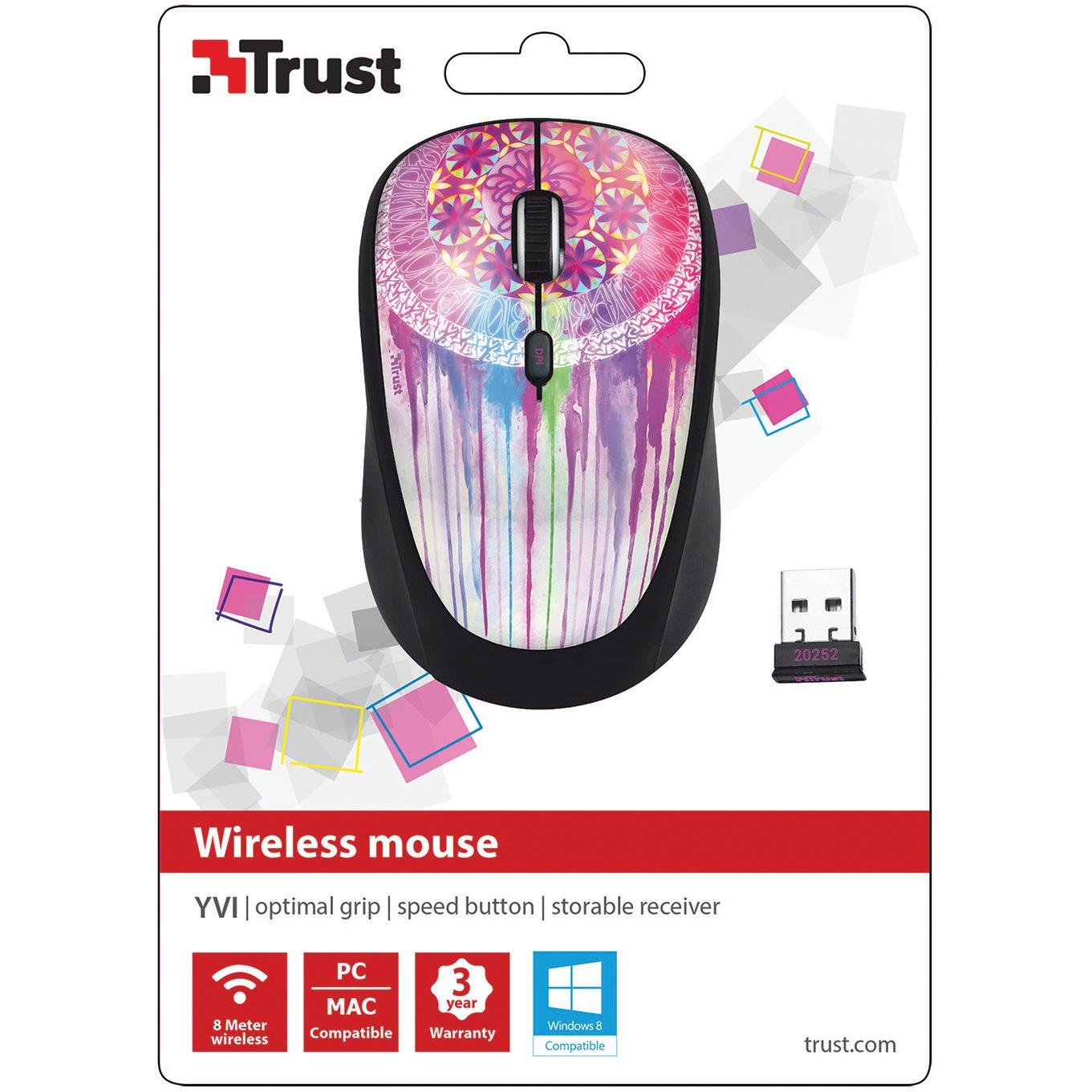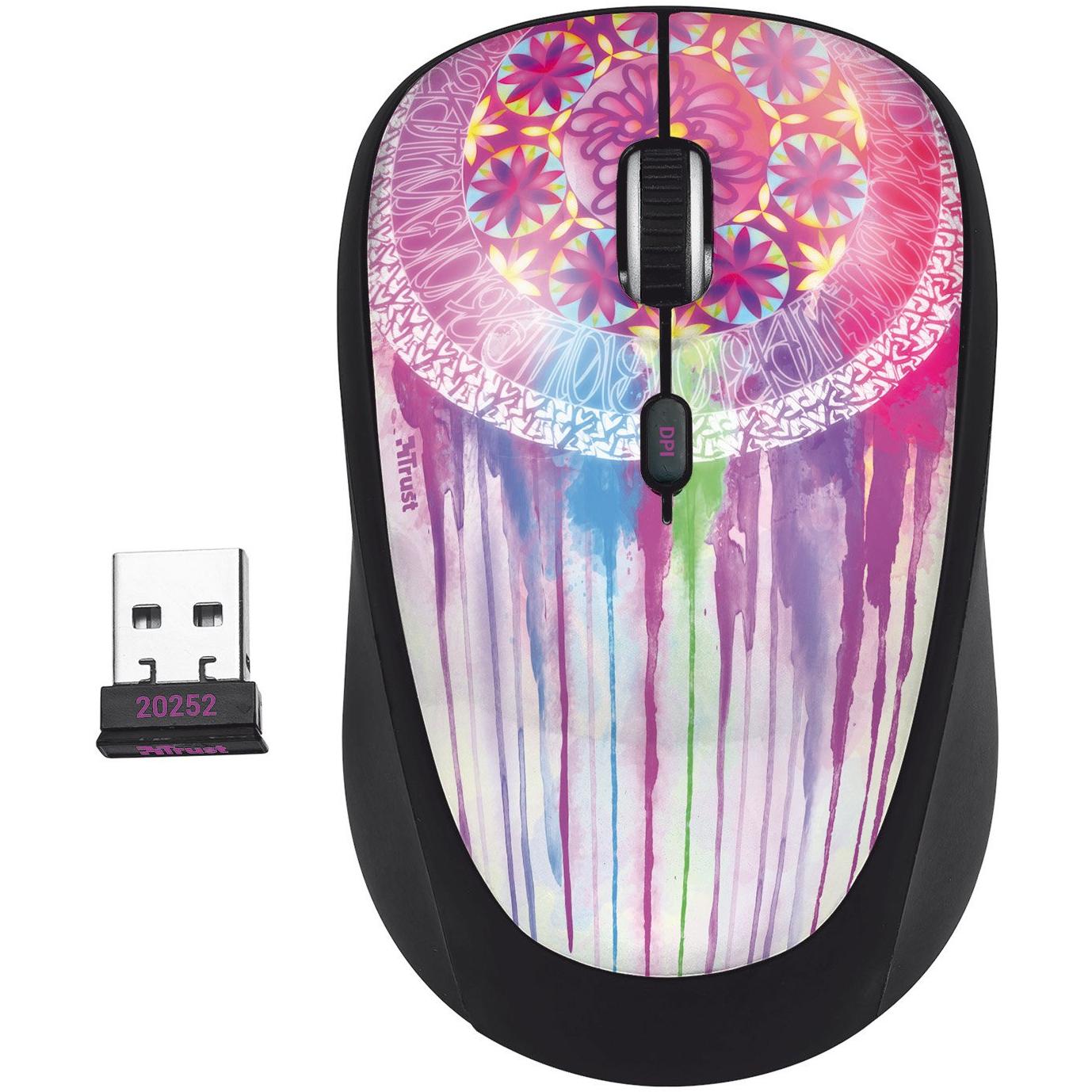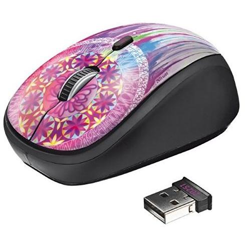 Mouse wireless ottico Trust Yvi Dream Catcher, ambidestro e multicolore, con superficie a immagine vivace. Offre quattro pulsanti pressabili, rotella ...
