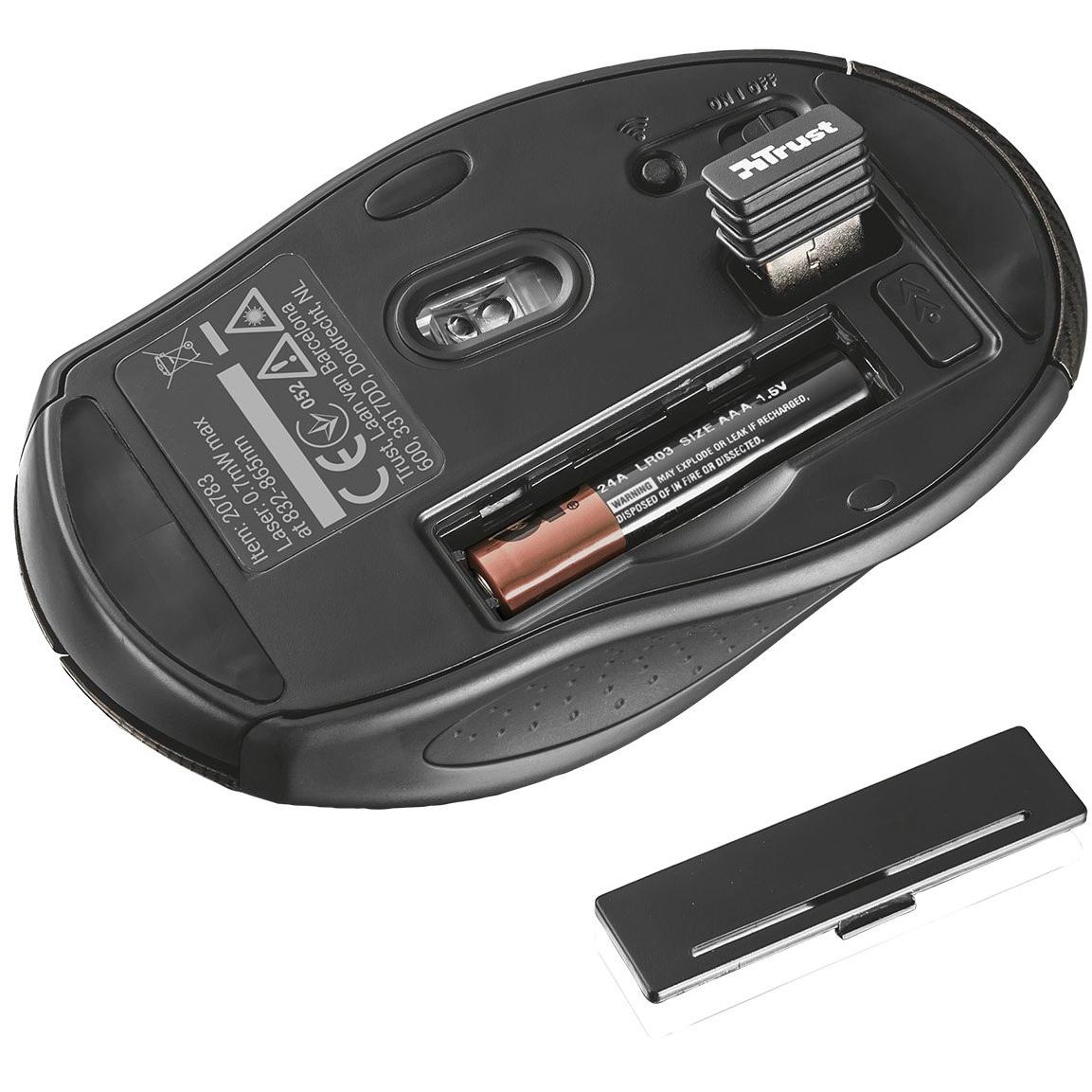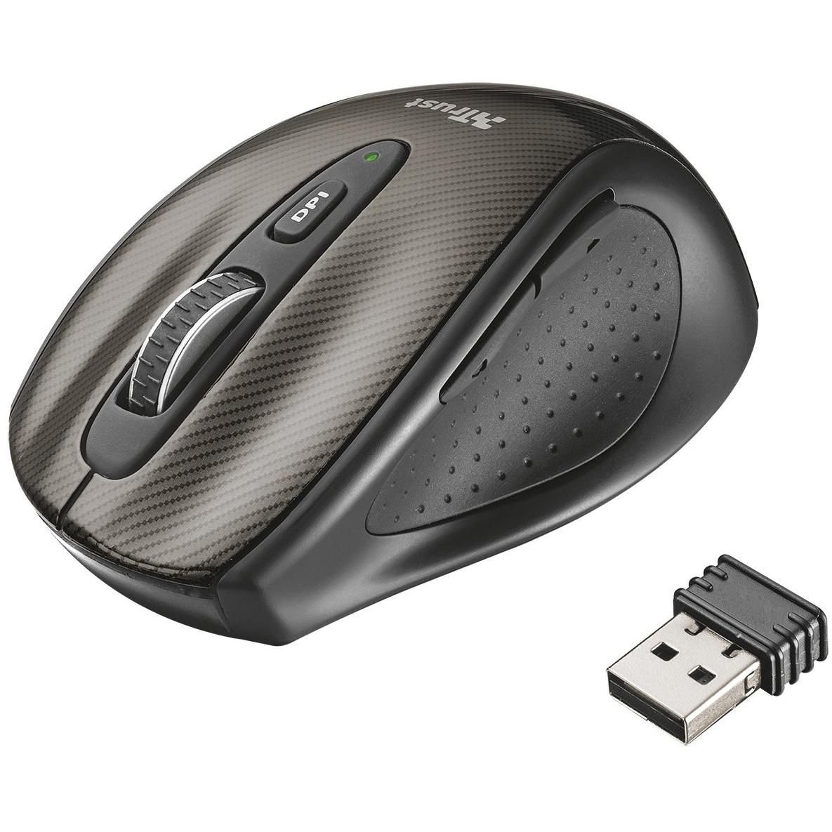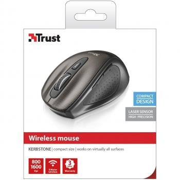 Mouse Trust Kerb nero, ergonomico per mano destra, con sensore laser da 1600 DPI e una ruota di scorrimento. Offre sei pulsanti programmabili, aliment ...