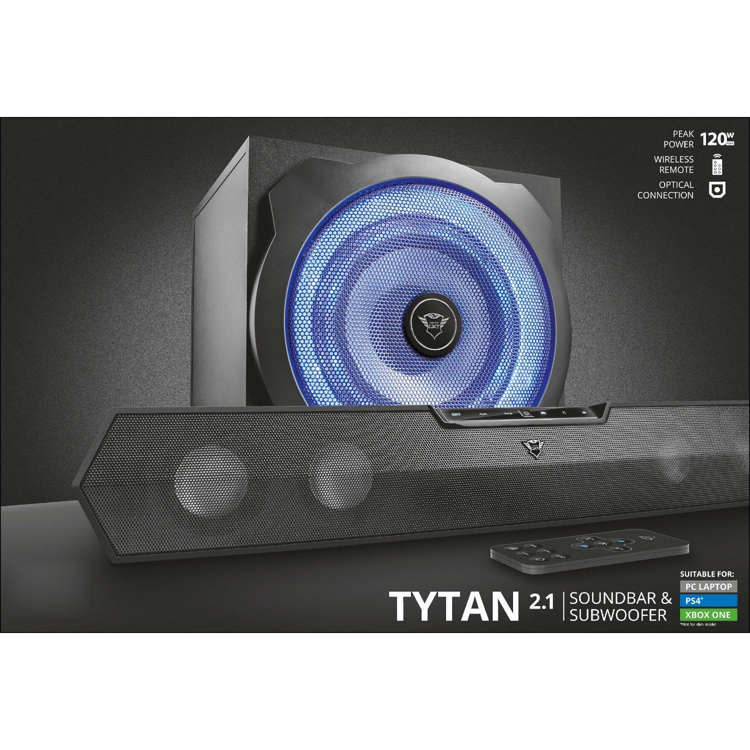 Trust Tytan Gaming GXT 668 è una soundbar 2.1 con subwoofer LED che trasforma l’ambiente in un teatro audio: 60 W RMS per suoni chiari e bassi ...