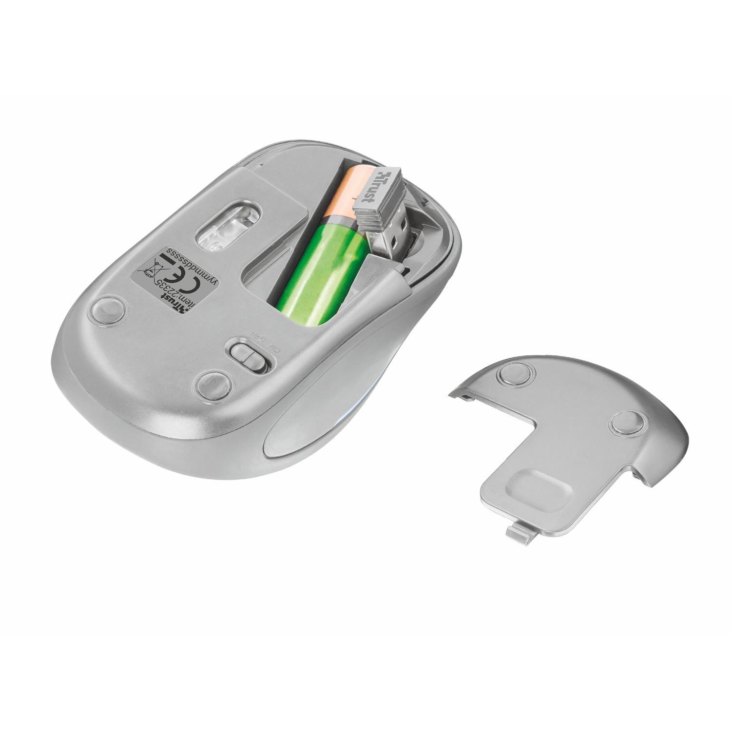 Trust - 22335 - 8713439223354 - B078SZ3M4B - Grigio, Bianco - Ambidestro - RF Wireless - 1600 DPI - Ottico - Tasti premuti - Rotella - PC/PC portatile