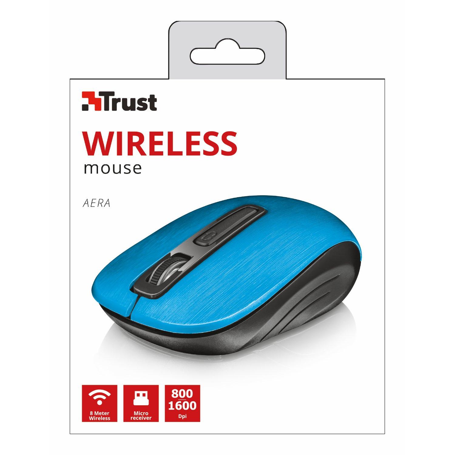 Mouse Wireless Ambidestro Trust Aera 1600DPI Nero e Blu