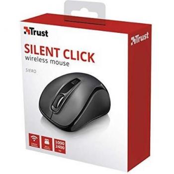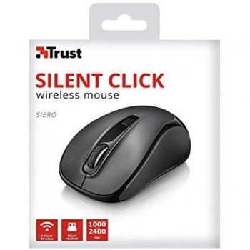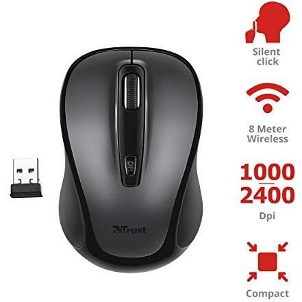 Mouse Trust Siero nero con pulsanti silenziosi e un unico interruttore DPI che passa da 1000 a 2400 DPI, ruota di scorrimento verticale e ricevitore m ...