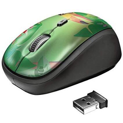 Mouse wireless verde Trust Yvi con pulsanti ergonomici e sensore di tracciamento ottico