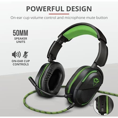 Trust GXT 422G Legion Cuffie gaming per Xbox One, Potenti unità altoparlanti attive da 50 mm, Nero