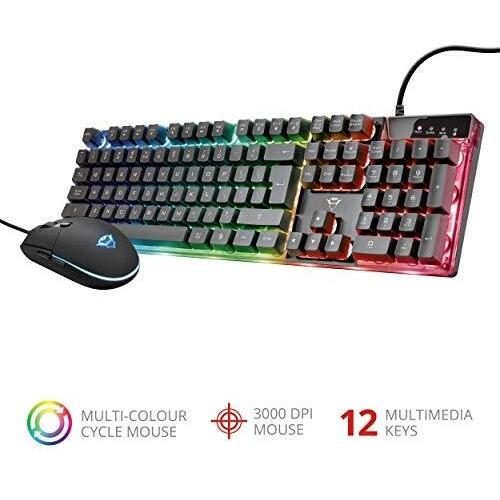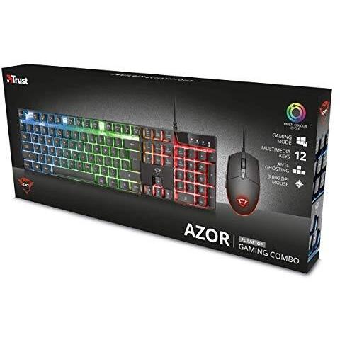 Trust Gaming GXT 838 Azor Mouse e Tastiera Gaming, Layout Italiano QWERTY, USB, Anti-ghosting, Tastiera Retroilluminata LED RGB, Mouse Gaming 800-3000 DPI - Nero