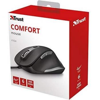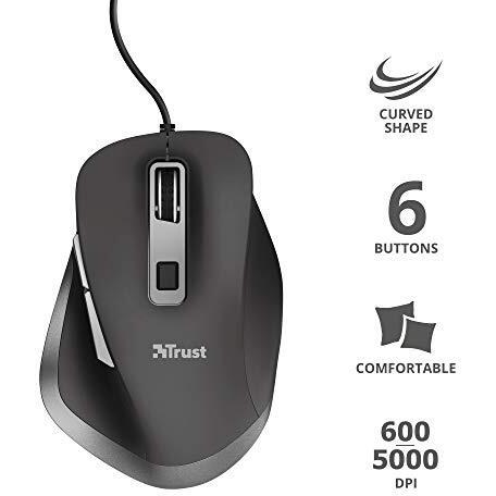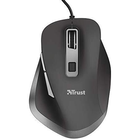 Trust Fyda Mouse with Wired Curved Lines (ergonomic design, six buttons, cursor speed with very high DPI 600-1400-2800-5000) Black