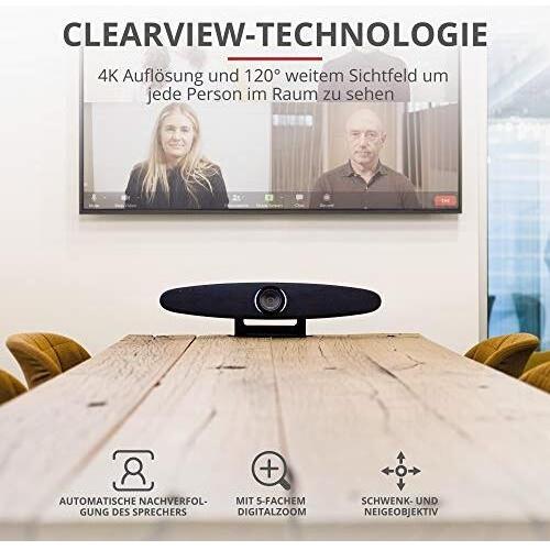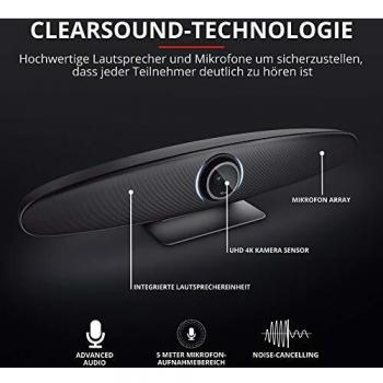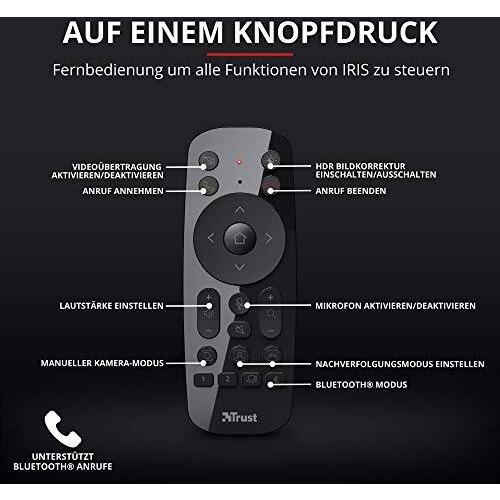 Trust IRIS Videocamera 4K per Videoconferenza Professionale, Ultra HD Telecamera con Tecnologie ClearView e ClearSound, 60 FPS, Grandangolo a 120°, Video Conference Kit con Telecomando Wireless