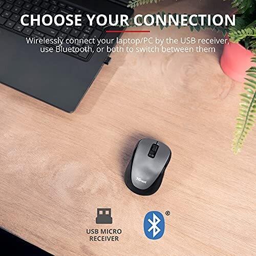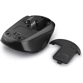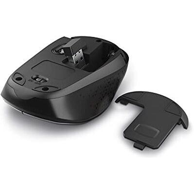 Mouse wireless a doppia modalità con DPI regolabili 800-1600, con Bluetooth o 2,4 GHz. Quattro pulsanti, ricevitore USB incluso, design ambidestro, c ...