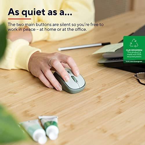 Trust Yvi+ Mouse Wireless Silenzioso con Design Sostenibile, 800-1600 DPI, per Mano Sinistra e Destra, Microricevitore USB, Mouse Senza Fili Compatto per PC, Computer, Laptop, Mac - Verde