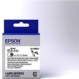 Epson Guaina Termorestringente Bianca per testo Nero, Heat Srink Tube D3mm/2,5 LK-4WBA3