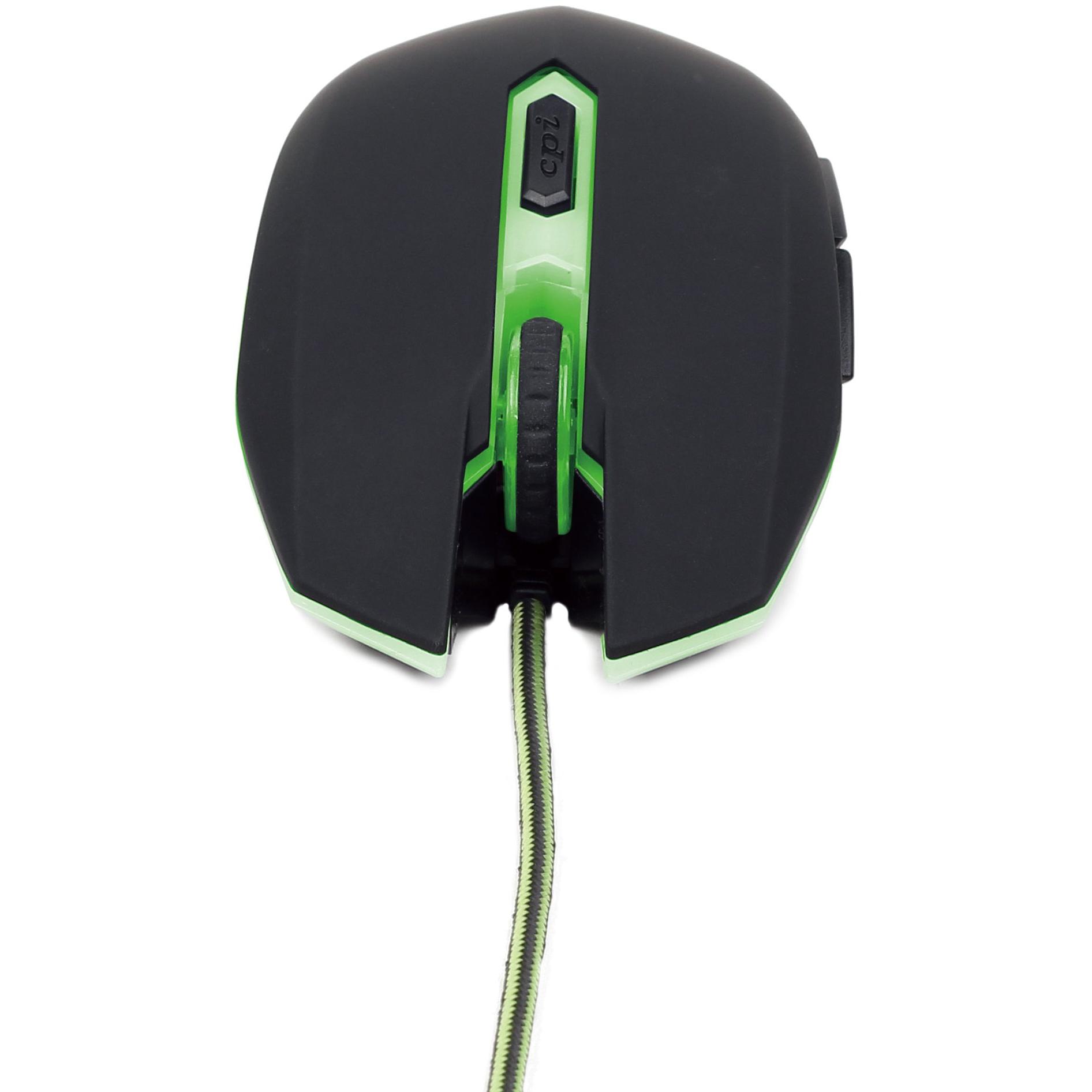 Gembird Mouse Gaming Ambidestro 2400 DPI USB Nero-Verde