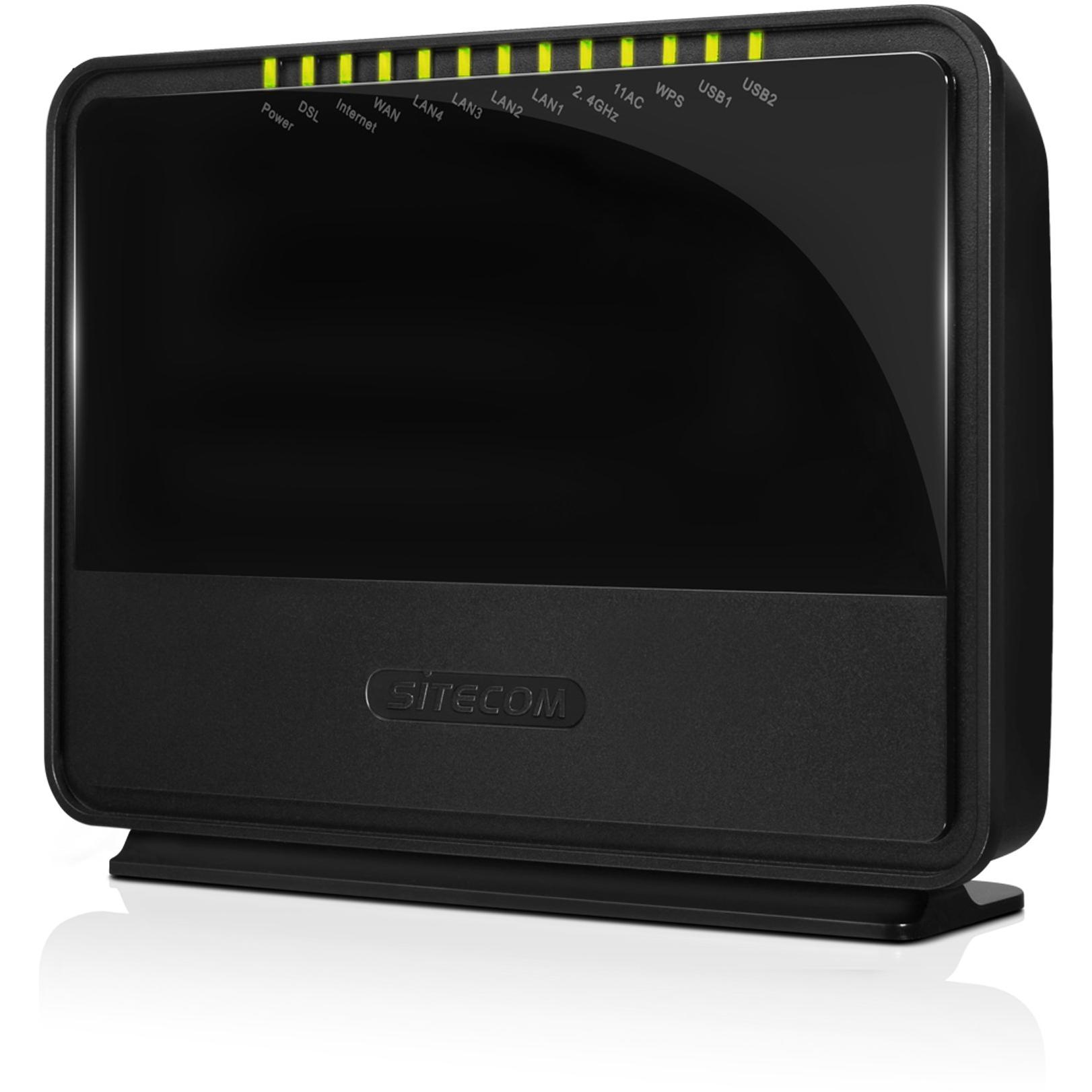 Modem‑router Sitecom WLM‑7600 garantisce connessioni VDSL2+/ADSL con Wi‑Fi dual band fino a 1300 Mbit/s, quattro porte Gigabit Ethernet e fire ...