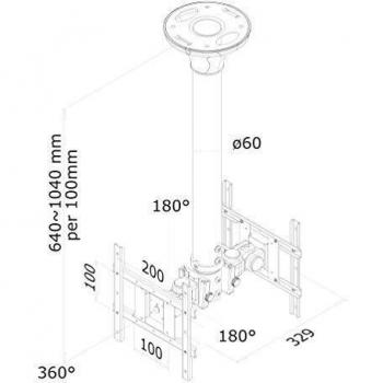 Supporto da soffitto per monitor TV nero doppio 40kg