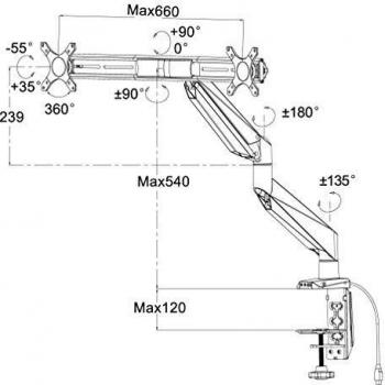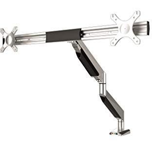 Supporto tavolo argento per due monitor fino a 27″ con braccio flessibile: rotazione 360°, oscillazione 180° e inclinazione da 0 a 90°. Regolabil ...