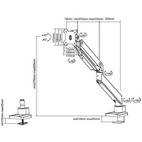 Newstar - 8717371447809 - B0841MJZ9B - NM-D775BLACKPLUS - 600 mm - 555 mm - 57,5 cm - 180° - 49.0" - HS83025000 - Nero - 100x100 - Gestione dei cavi ...