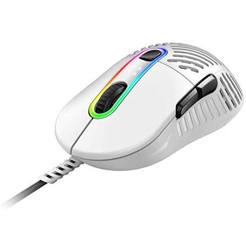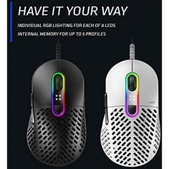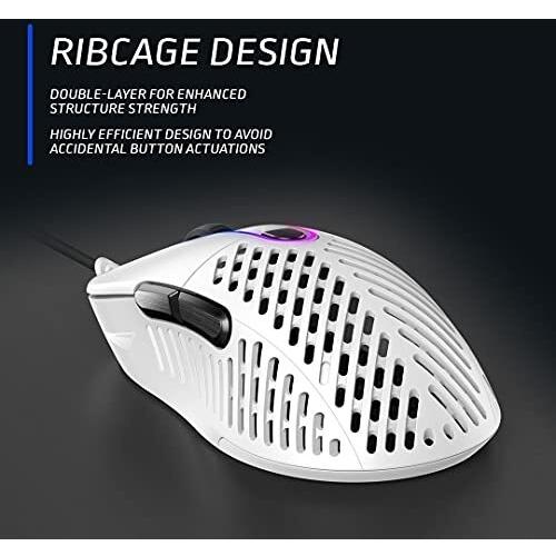 Mouse gaming bianco Mountain Makalu 67 con sensore PixArt PAW3370 da 19000 DPI, peso di 67 g e corpo in PTFE per scorrimento rapido. Design ergono ...