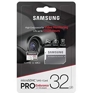 Samsung Memorie MB-MJ32GA PRO Endurance Scheda MicroSD da 32 GB, UHS-I U1, Fino a 100 MB/s, Adattatore SD Incluso, per Dispositivi di Videosorveglianza