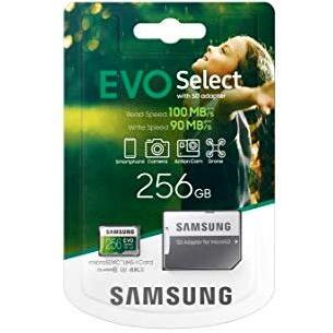 Samsung EVO Select MicroSD 256 GB – UHS‑I U3, 100 MB/s, con adattatore SD
