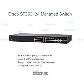 Switch gestito Cisco SF350-24 con 24 porte 10/100, 4 porte Gigabit Ethernet (GbE) combinate SFP, protezione limitata a vita (SF350-24-K9-EU)