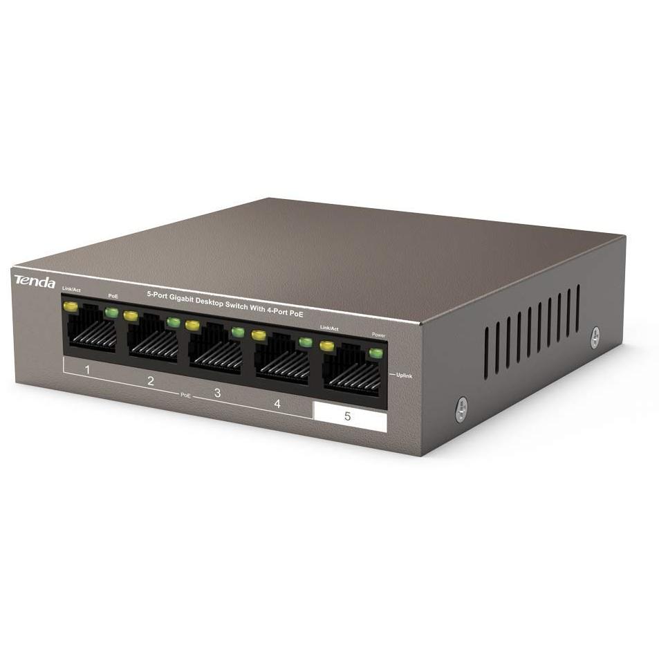 Switch Tenda PoE Desktop/Parete con Supporto 5-Porte e Distribuzione Energetica Fino a 63W