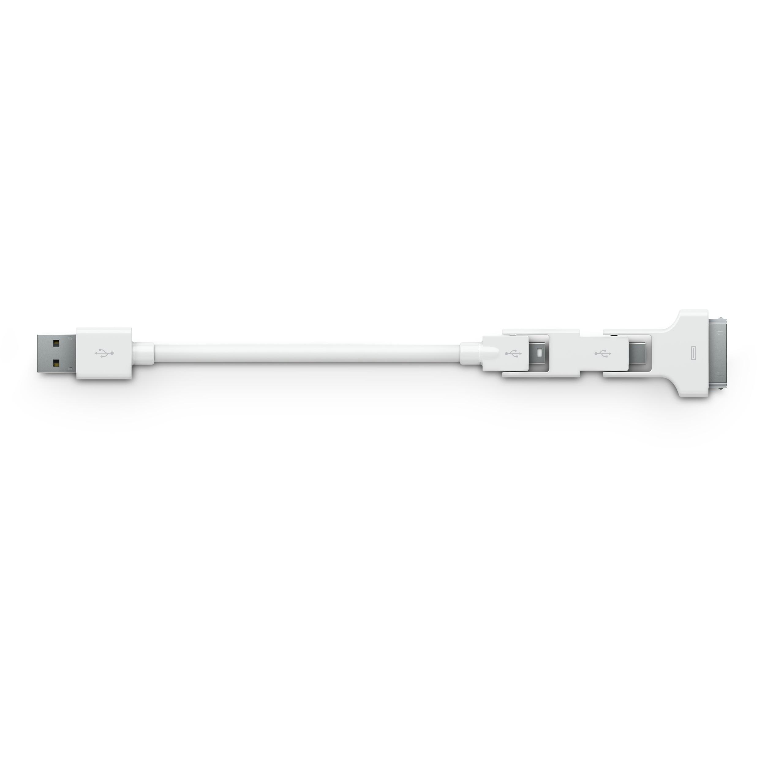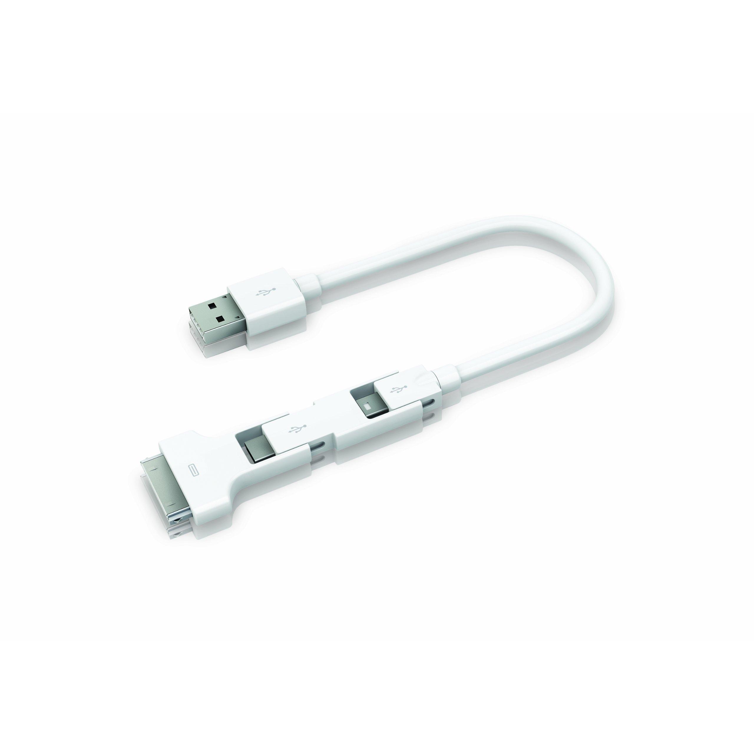 Un cavo compatto di 0,2 m che integra mini USB, micro USB e connettore Apple a 30 pin in un unico filo. La sua struttura resistente garantisce trasf ...