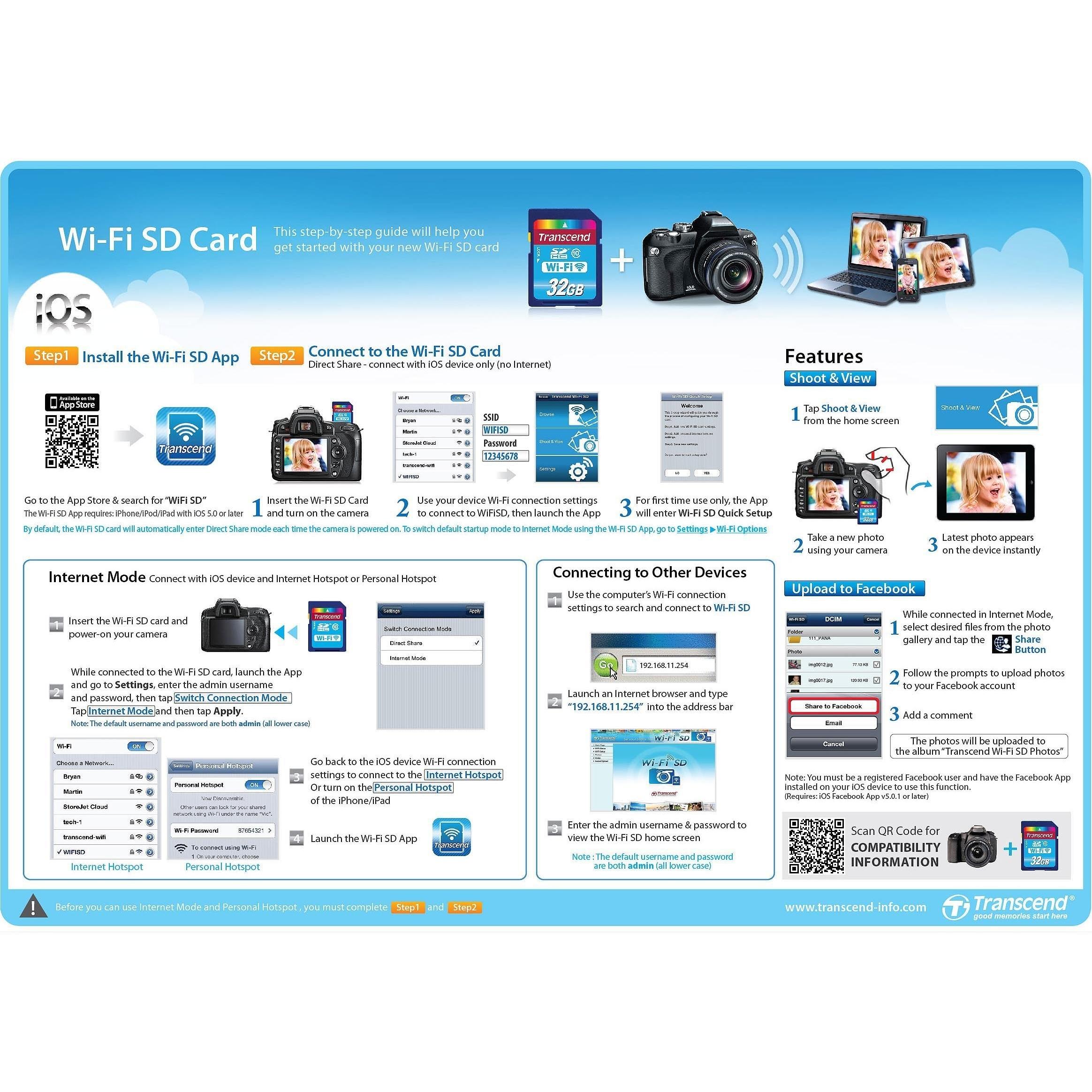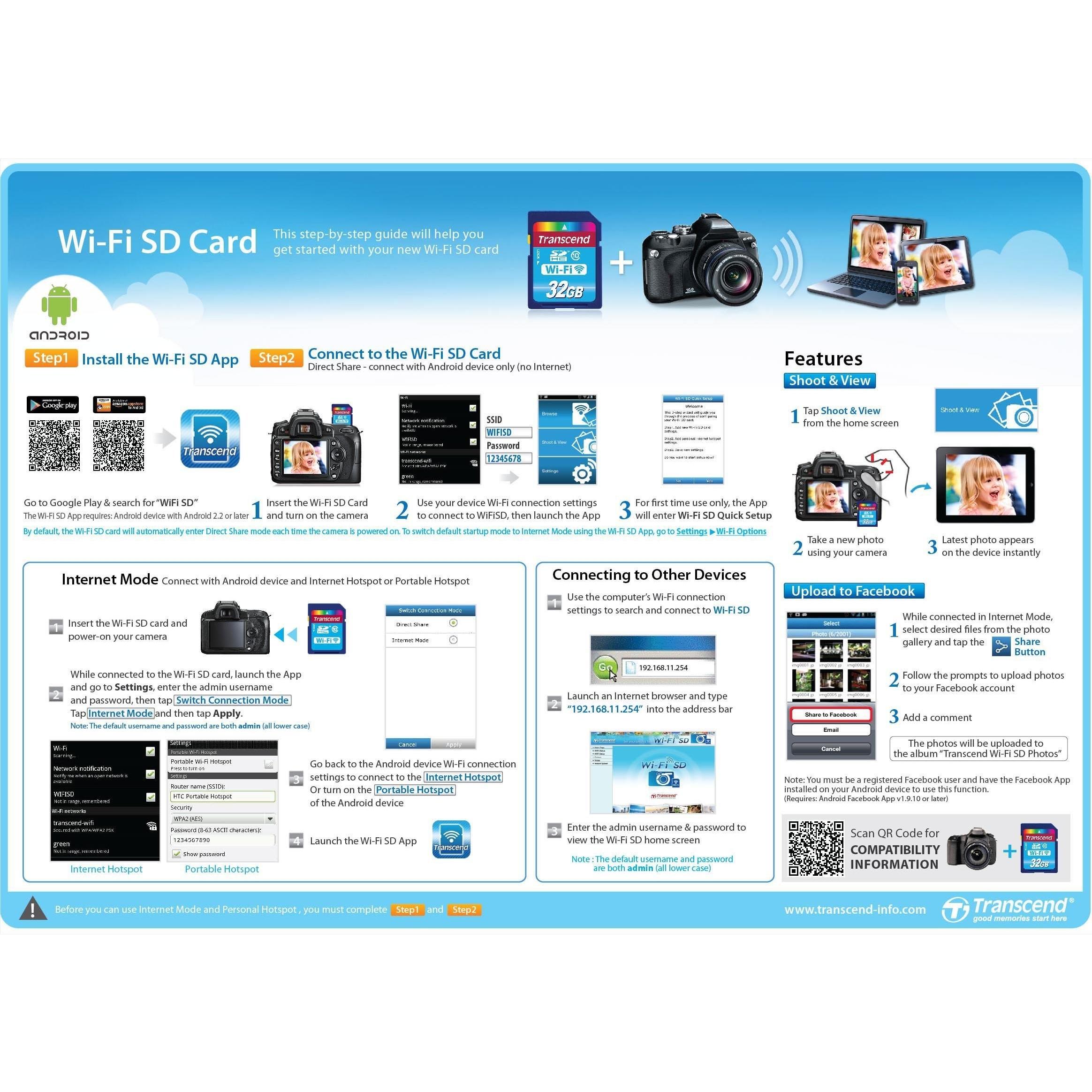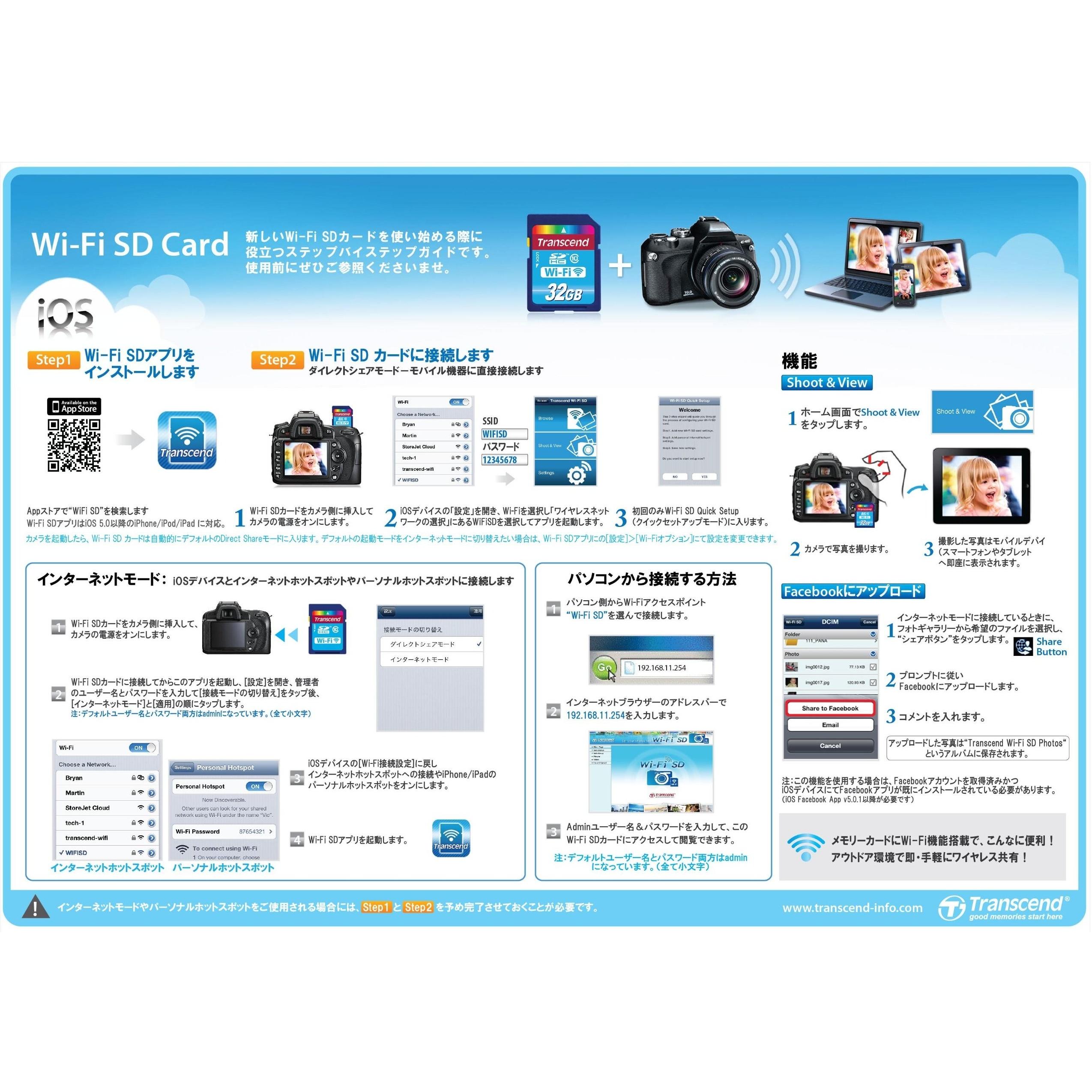 Chiavetta di Memoria Transcend con WiFi, Classe 10, Capacità 32 GB