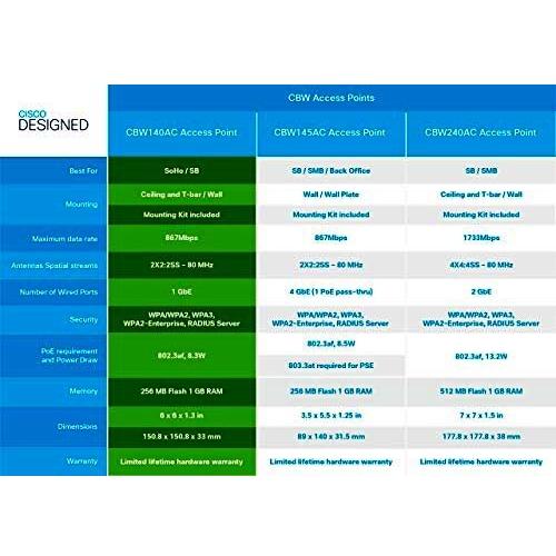 Cisco business cbw140ac-e access point dual band ieee 802.11ac 1 x 1000base-t (poe) - rj-45