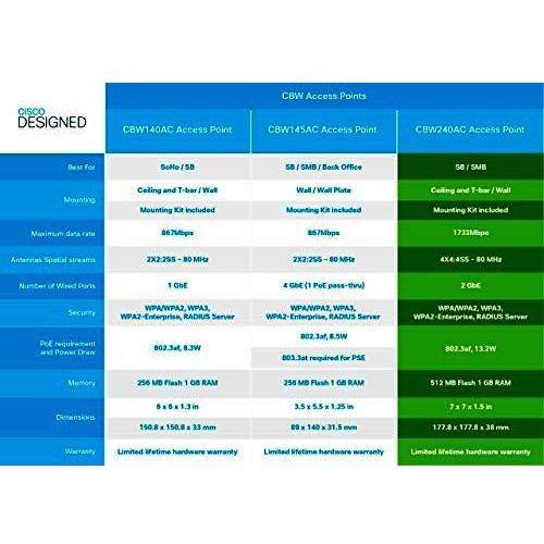 Cisco, Business 240AC, Access Point, 802.11ac 4x4 Wave 2, Pacchetto da 3 unita', Montaggio a Soffitto