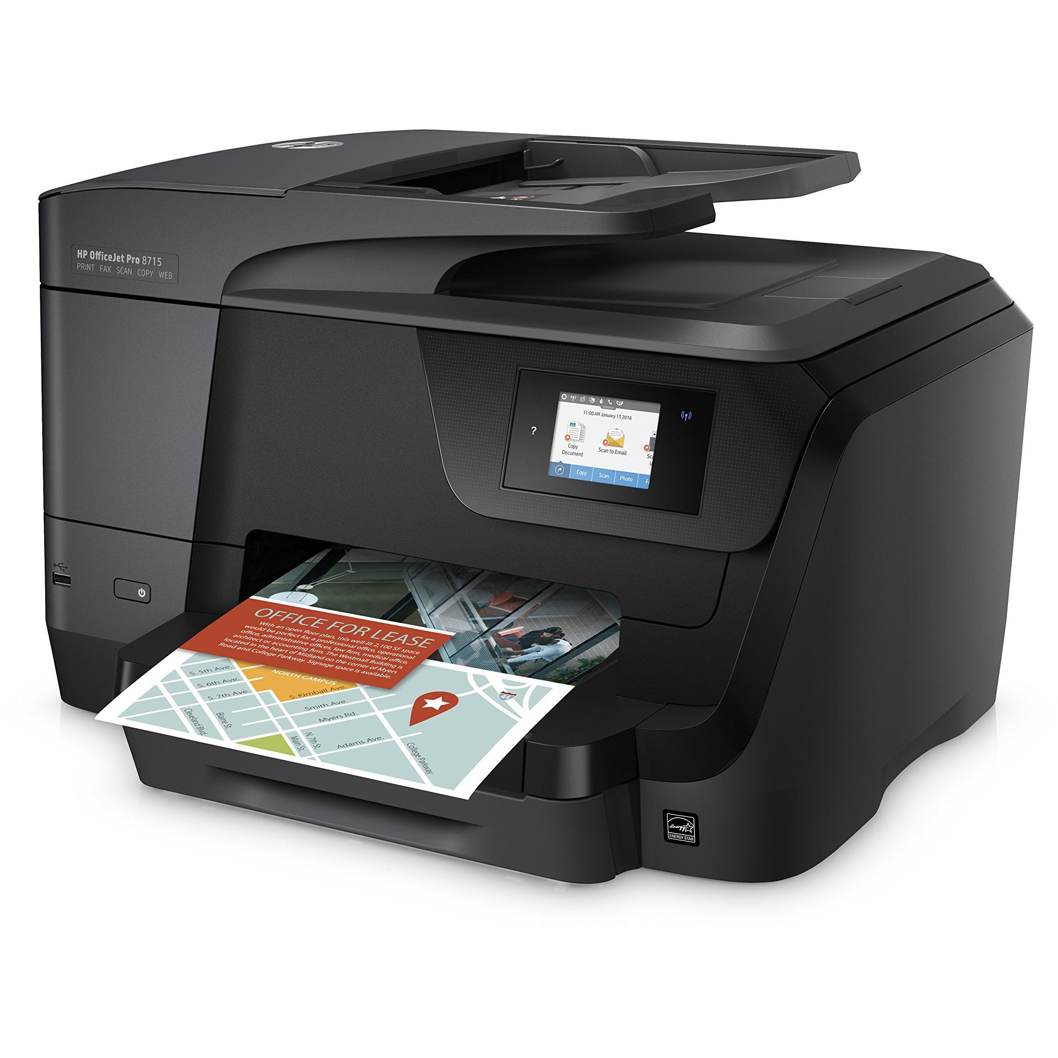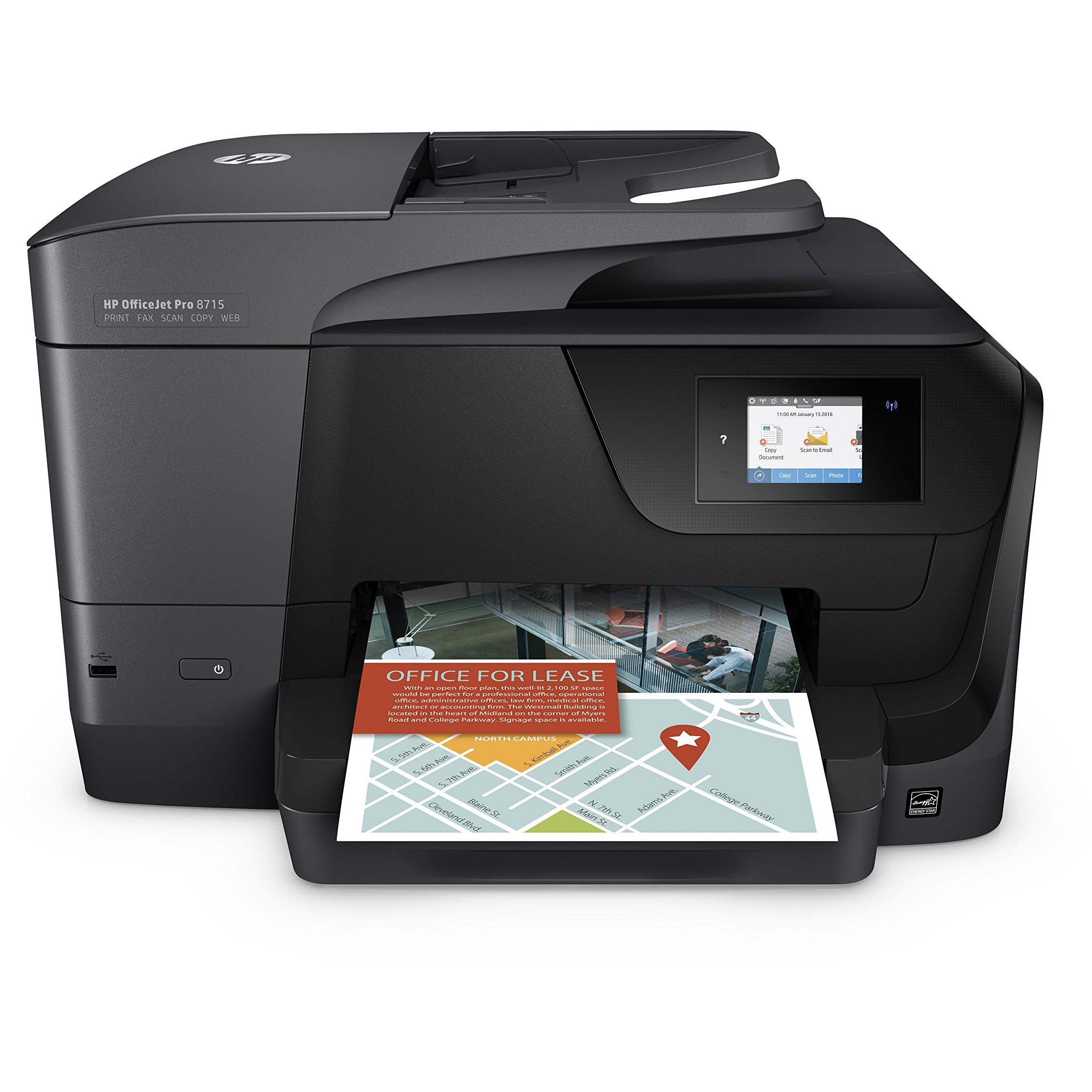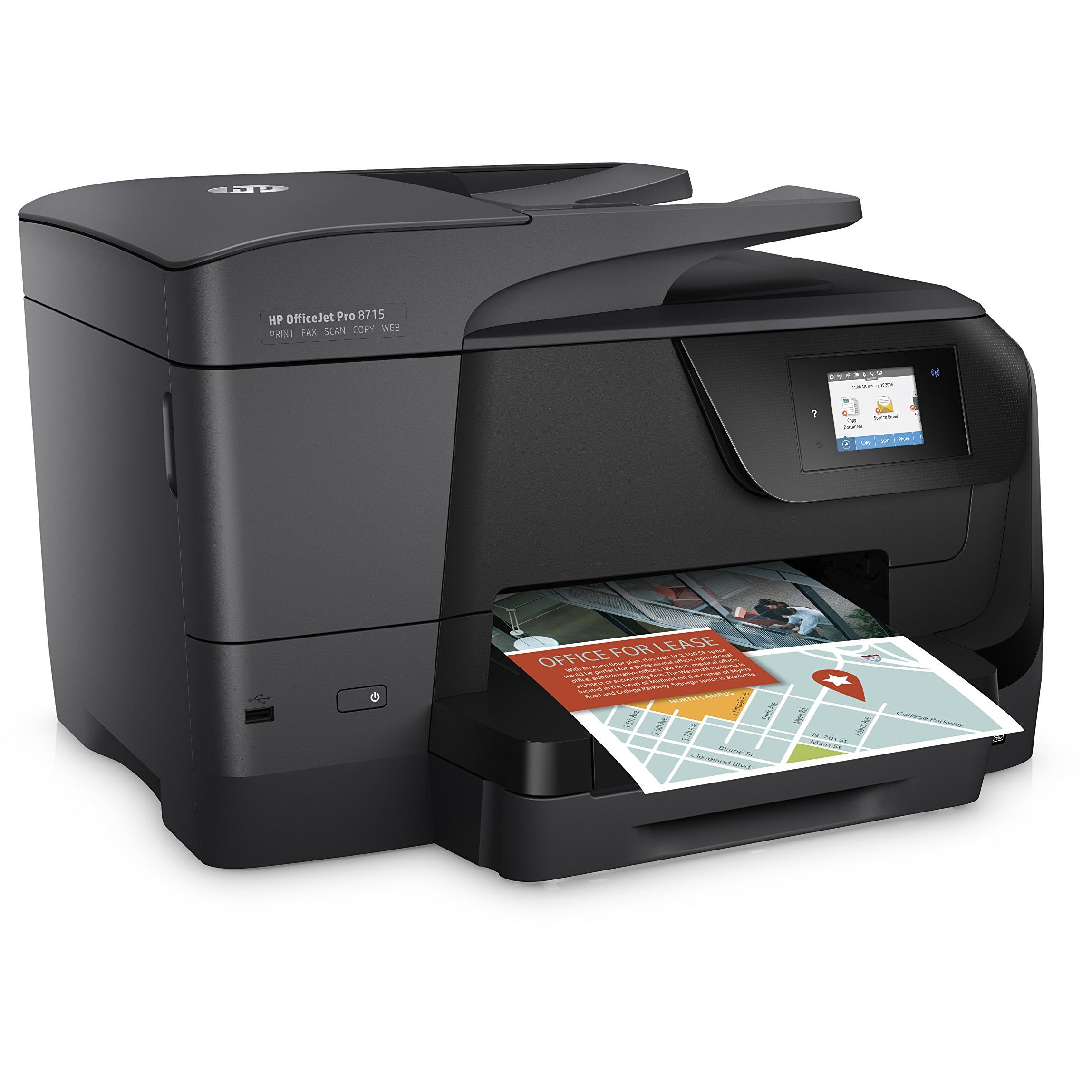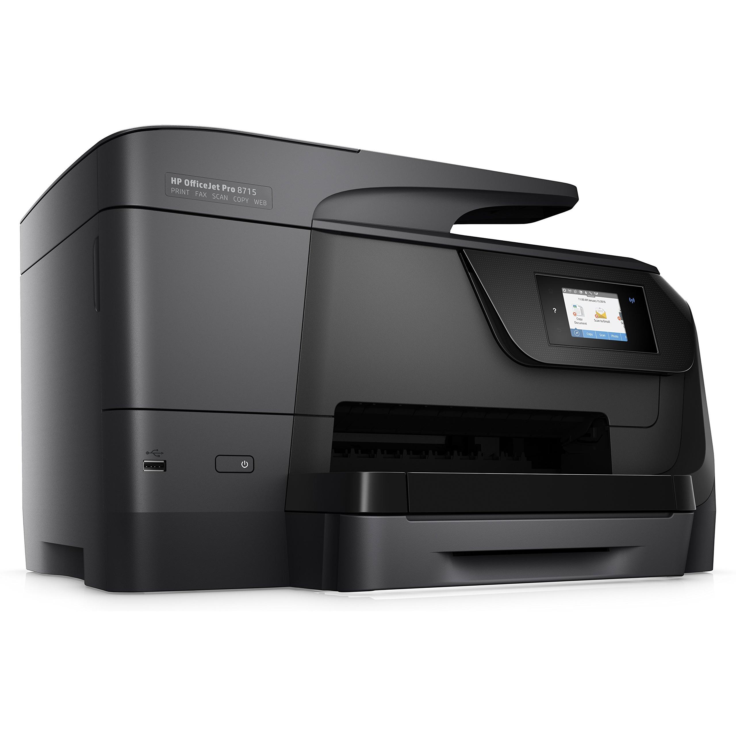 Stampante HP OfficeJet Pro 8715 con tecnologia inkjet termica: stampa fronte/retro a colori fino a 4800×1200 DPI, scansione a 1200 DPI e fax colo ...