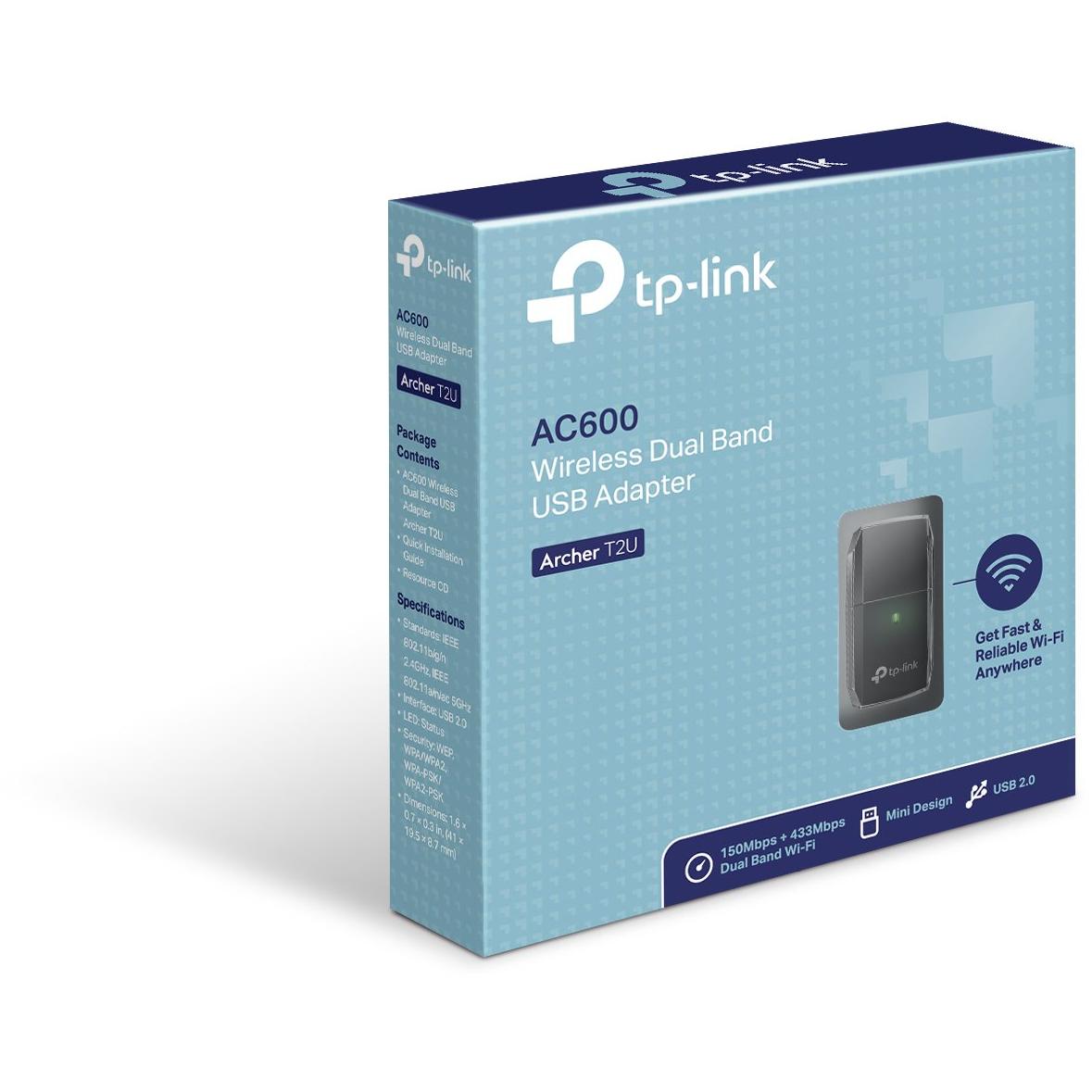 TP-Link Archer T2U Wireless Dual Band Adapter, 600Mbps WiFi Range Extender, Dual Band 2.4GHz & 5GHz, 1 Internal Antenna, USB 2.0 Interface, Mini Size