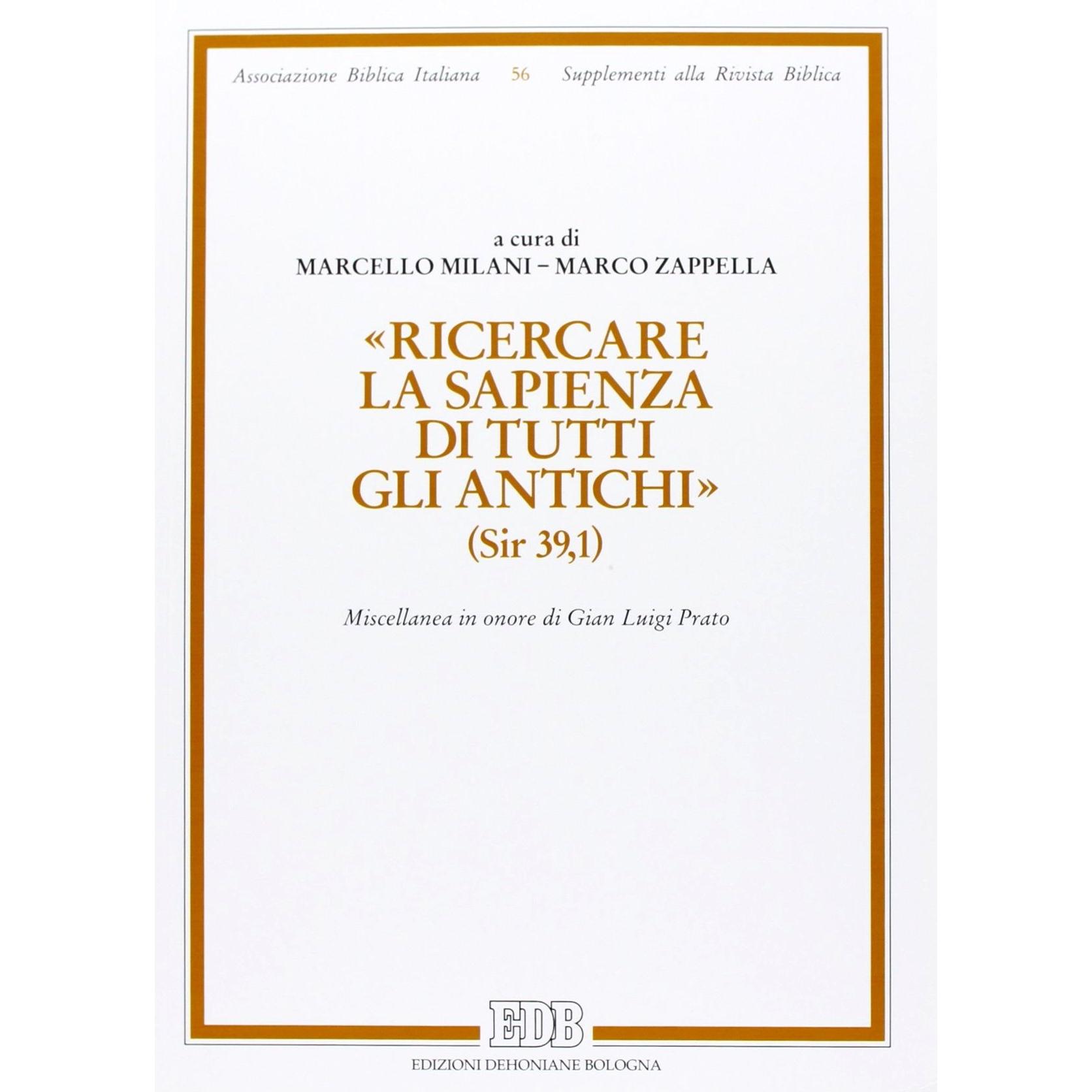 «Ricercare la sapienza di tutti gli antichi» (Sir. 39,1). Miscellanea in onore di Gian Luigi Prato