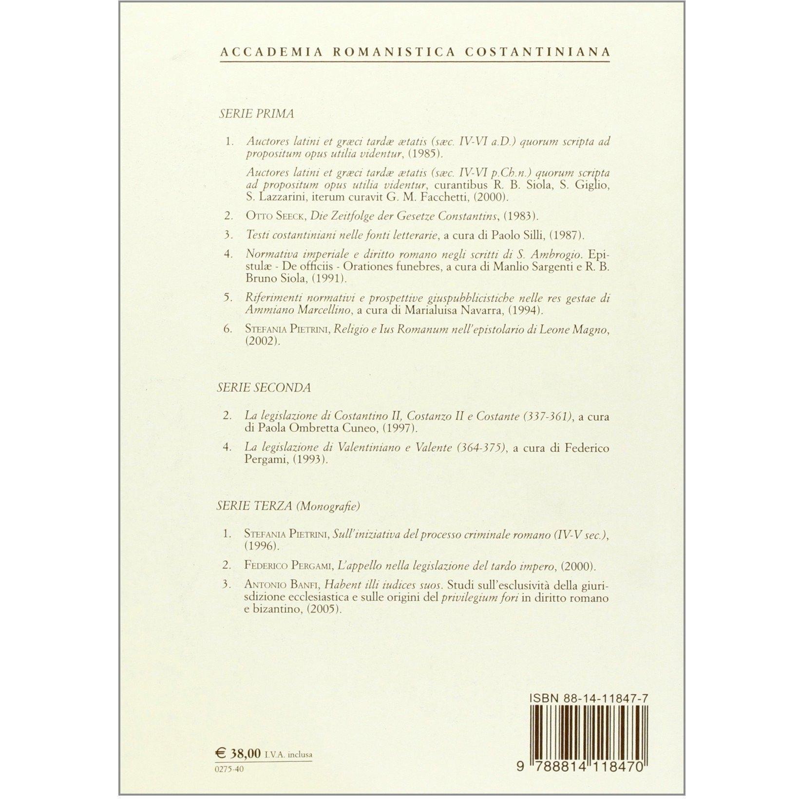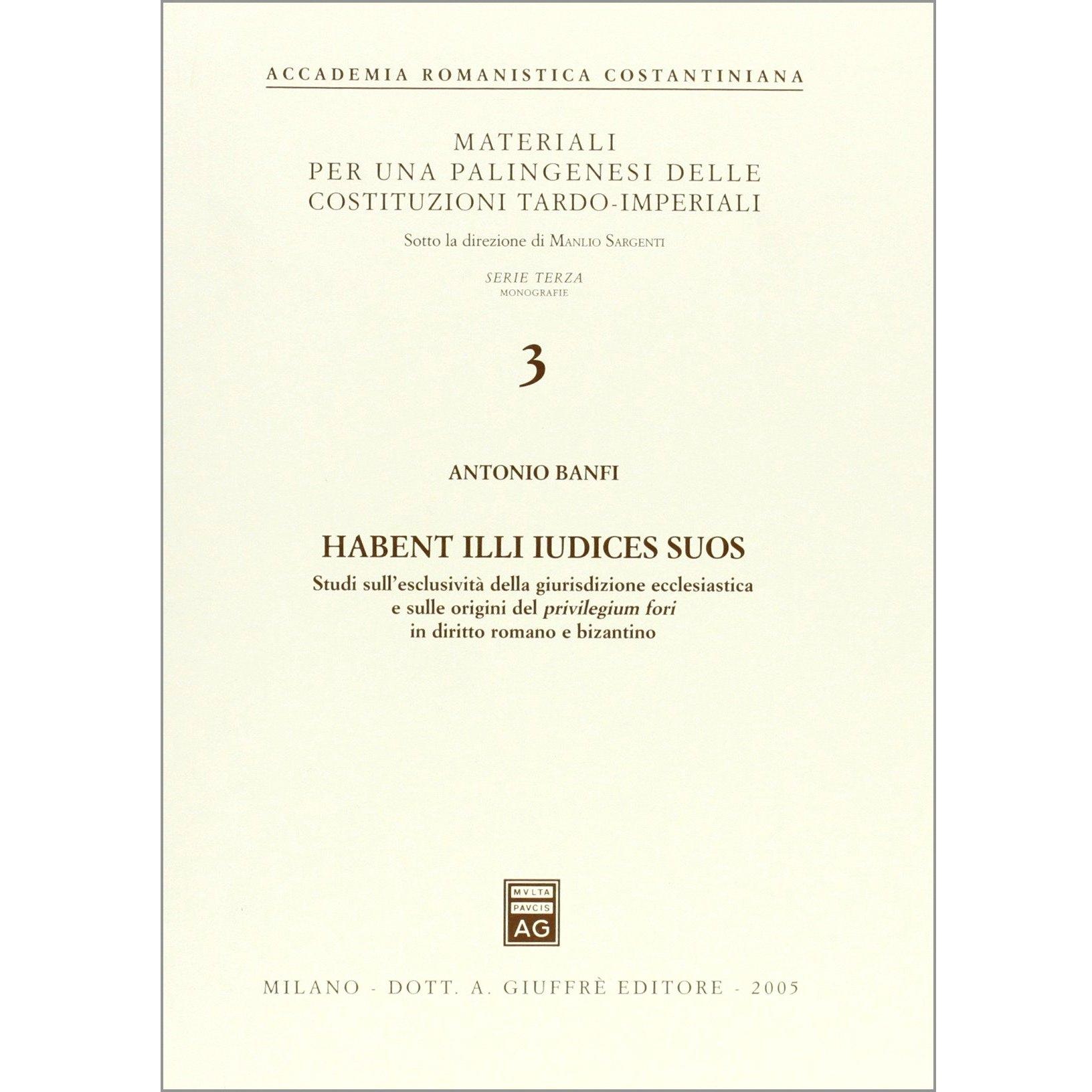 Habent illi iudices suos. Studi sull'esclusività della giurisdizione ecclesiastica e sulle origini del privilegium fori in diritto romano e bizantino Antonio Banfi