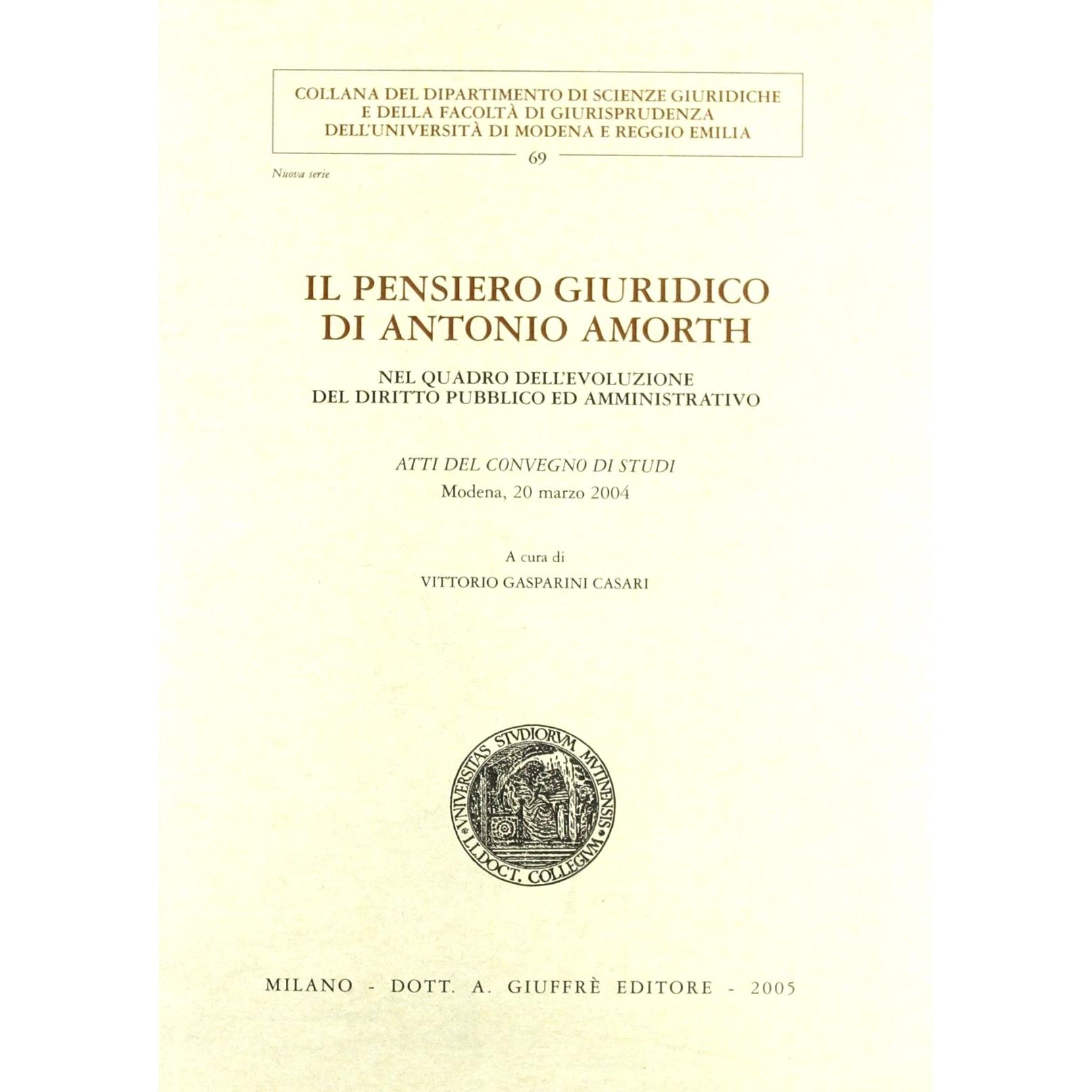 Il pensiero giuridico di Antonio Amorth. Nel quadro dell'evoluzione del diritto pubblico ed amministrativo. Atti del Convegno di studi (Modena, 20 marzo 2004)