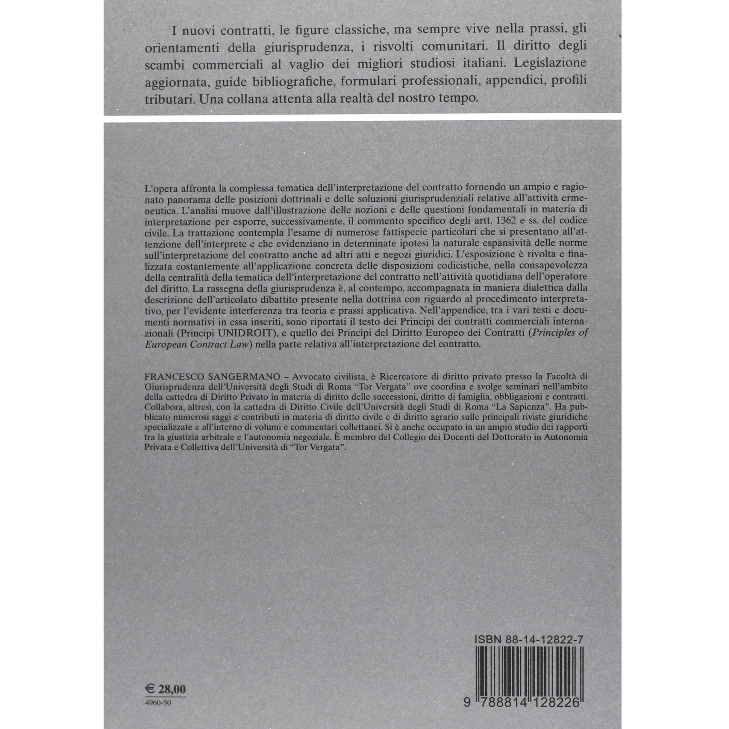 L' interpretazione del contratto. Profili dottrinali e giurisprudenziali Francesco Sangermano