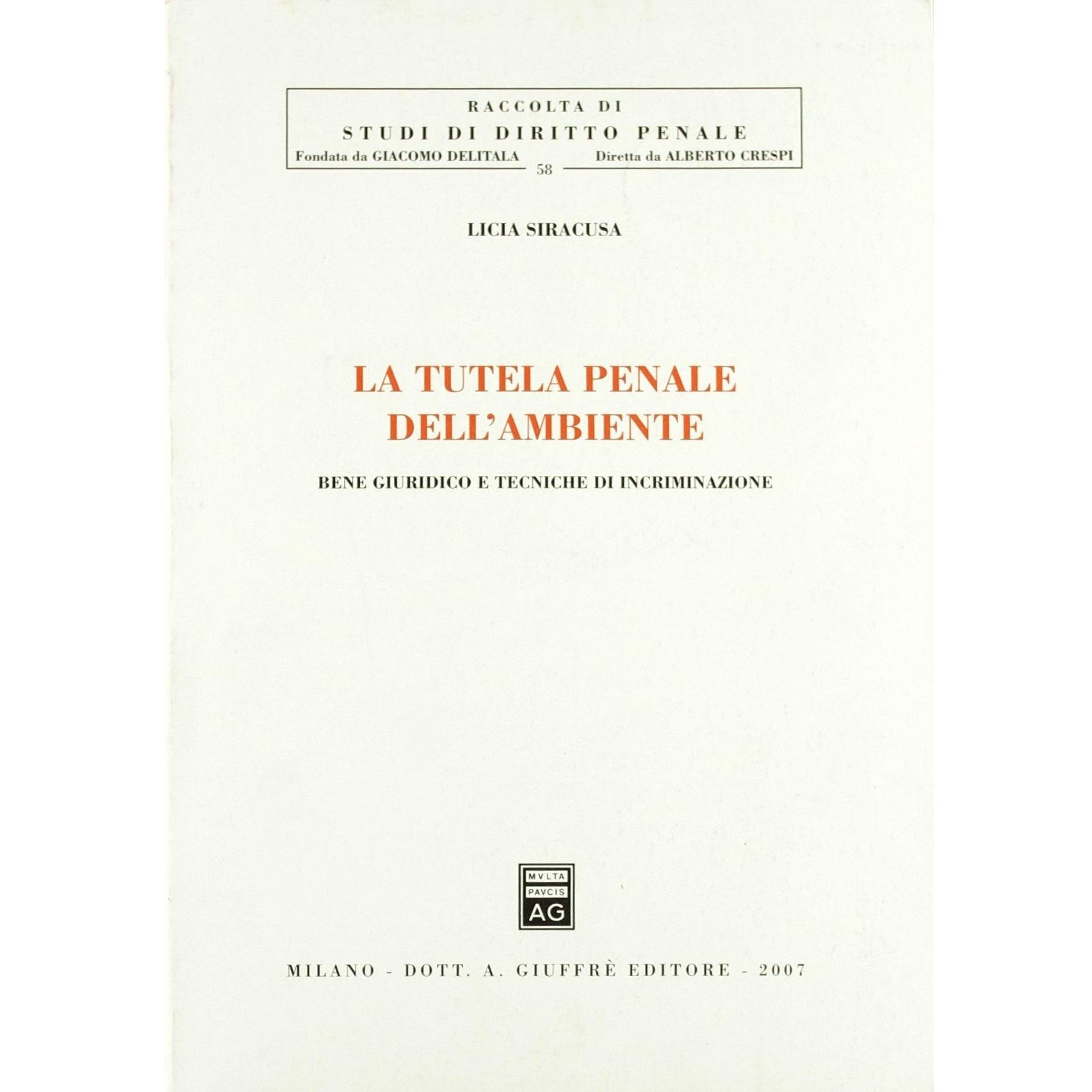 La tutela penale dell'ambiente. Bene giuridico e tecniche di incriminazione Licia Siracusa