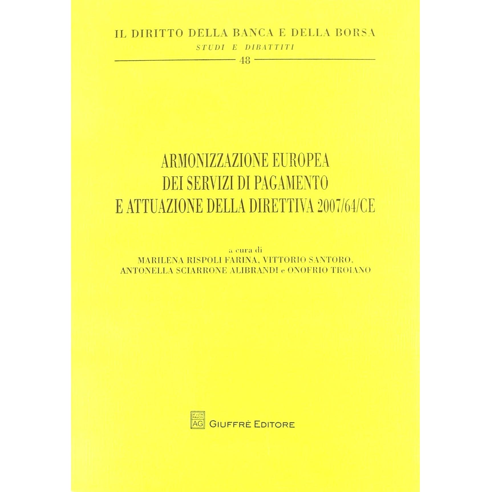 Armonizzazione europea dei servizi di pagamento e attuazione della direttiva 2007/64/CE
