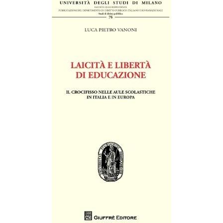 Laicità e libertà di educazione. Il crocifisso nelle aule scolastiche in Italia e in Europa Luca Pietro Vanoni