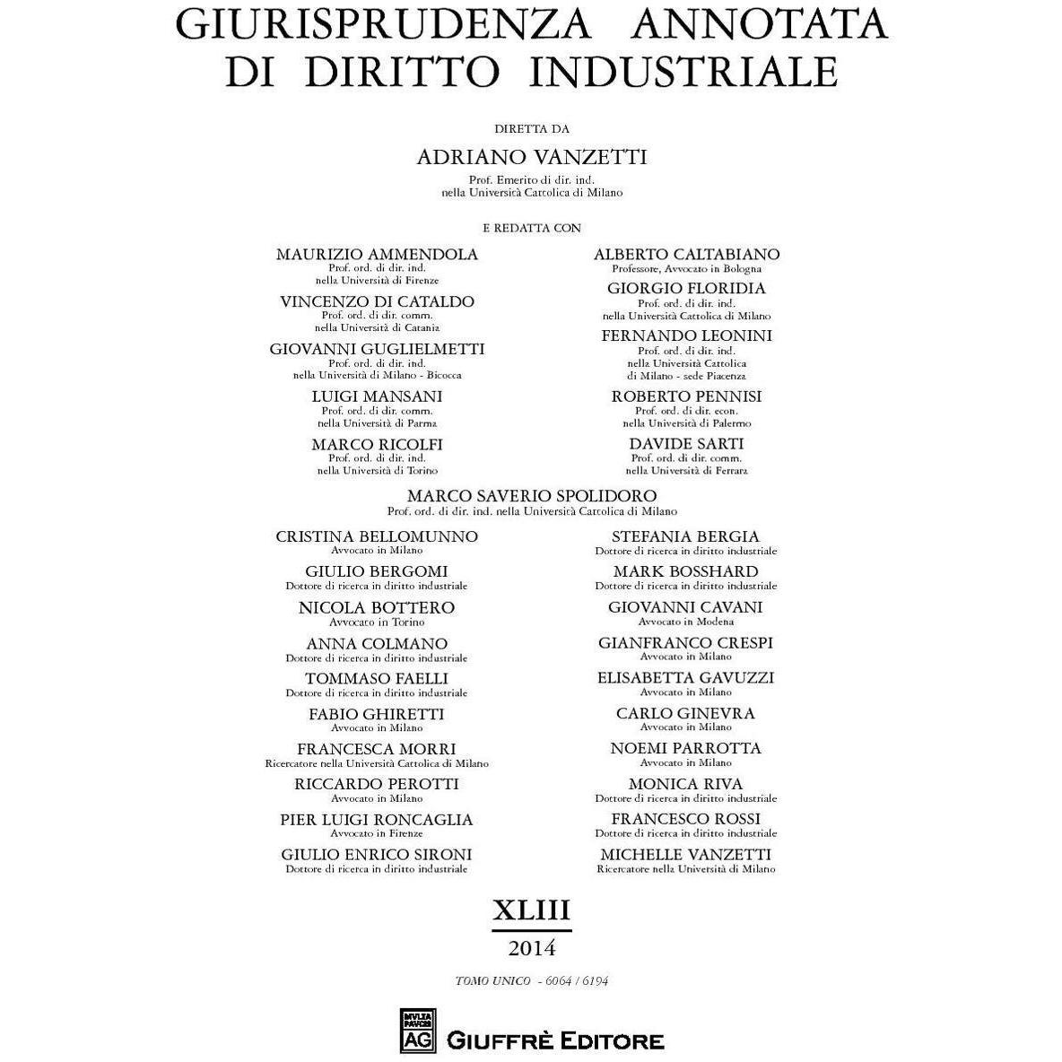 Giurisprudenza annotata di diritto industriale. Anno 43° (2014)