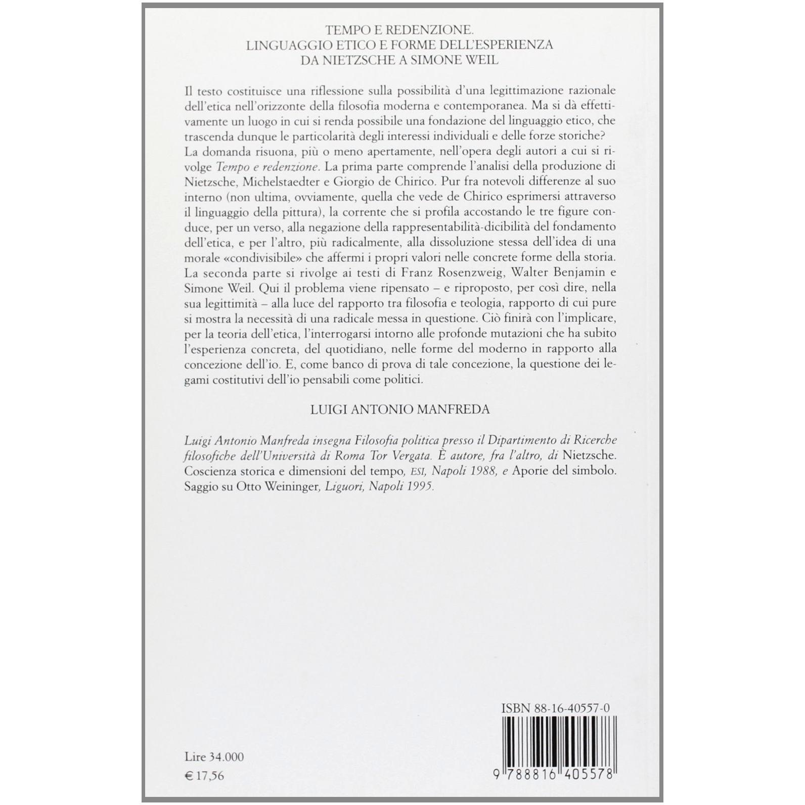 Tempo e redenzione. Linguaggio etico e forme dell'esperienza da Nietzsche a Simone Weil