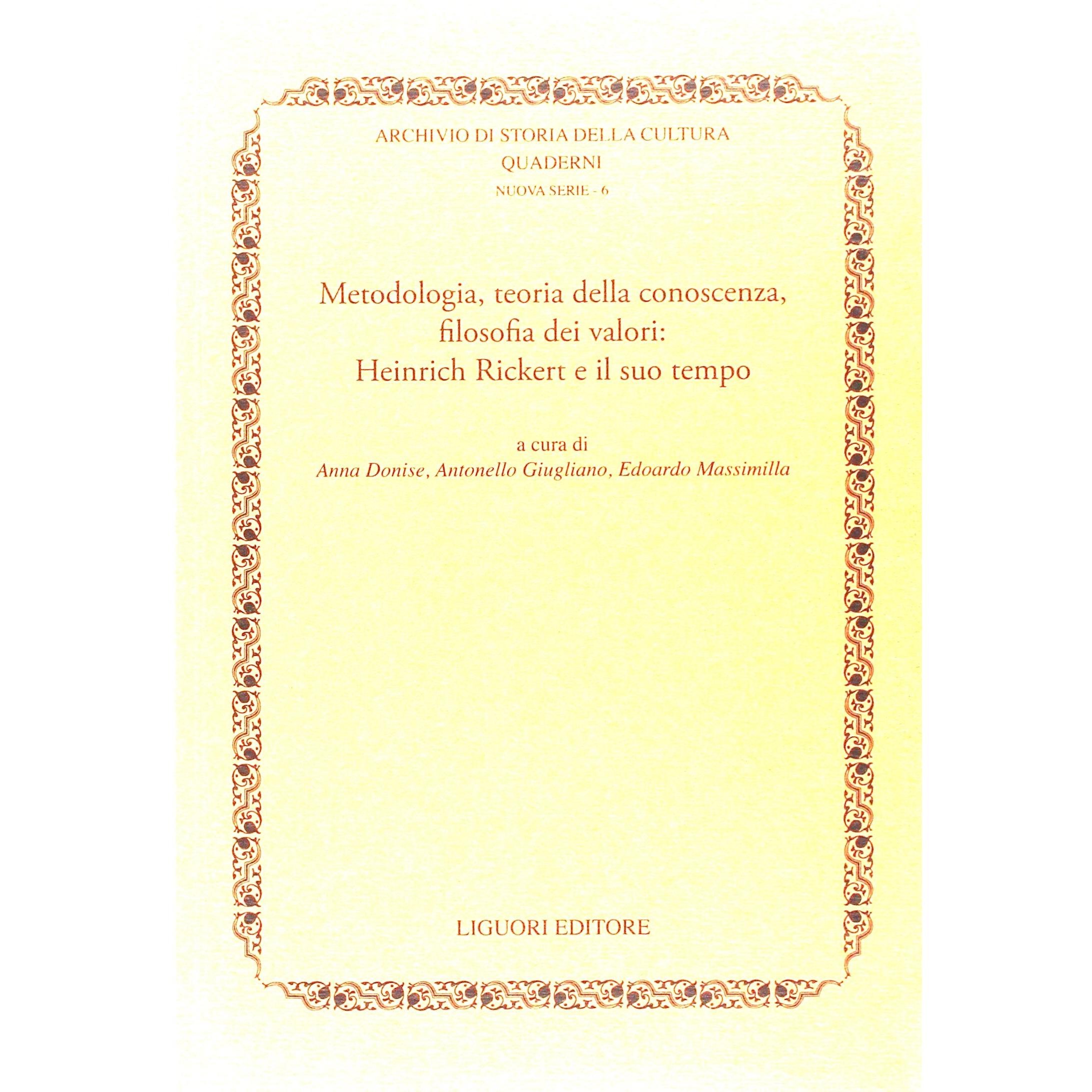Metodologia, teoria della conoscenza, filosofia dei valori. Heinrich Rickert e il suo tempo