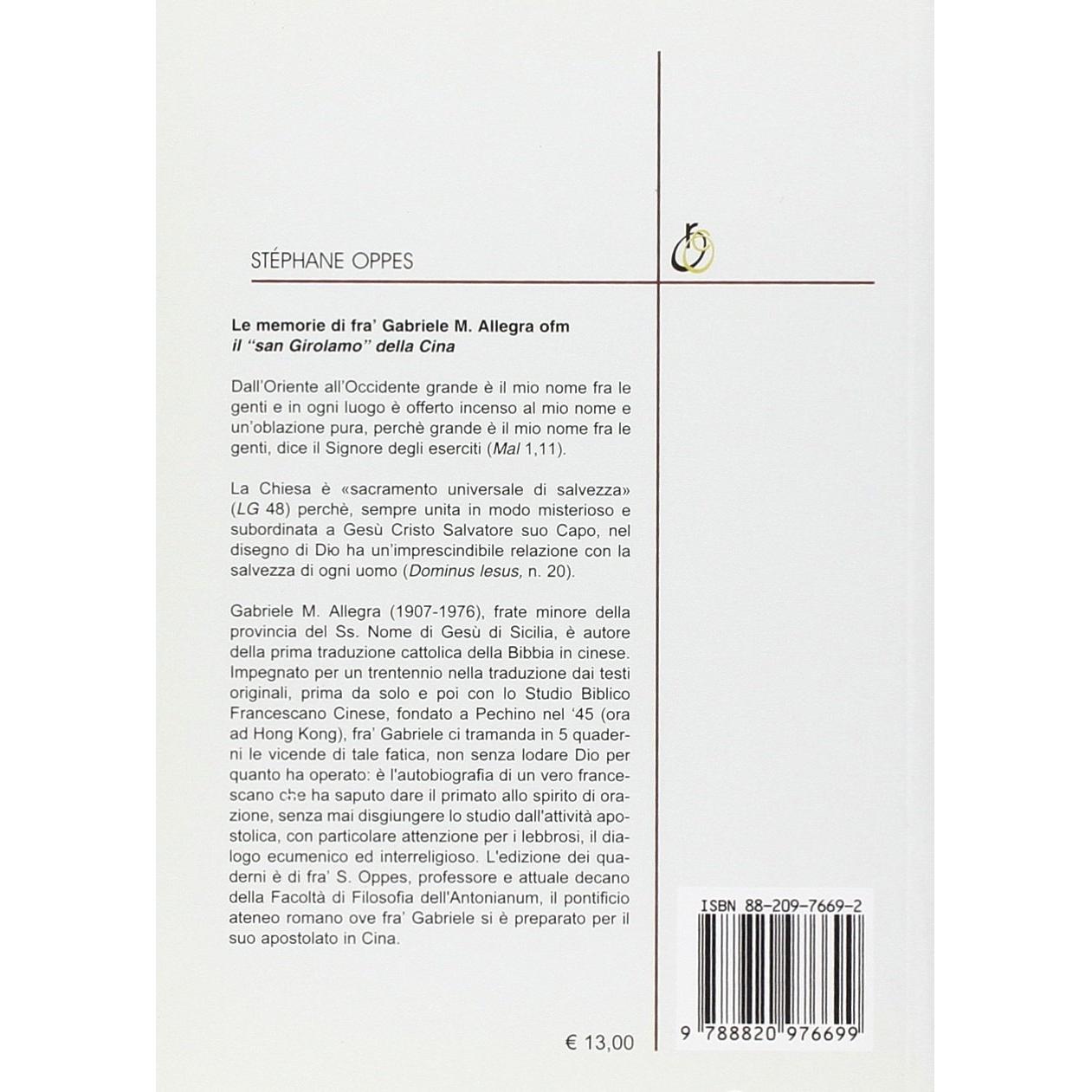 Le memorie di fra' Gabriele M. Allegra ofm. Il «san Girolamo» della Cina Stéphane Oppes