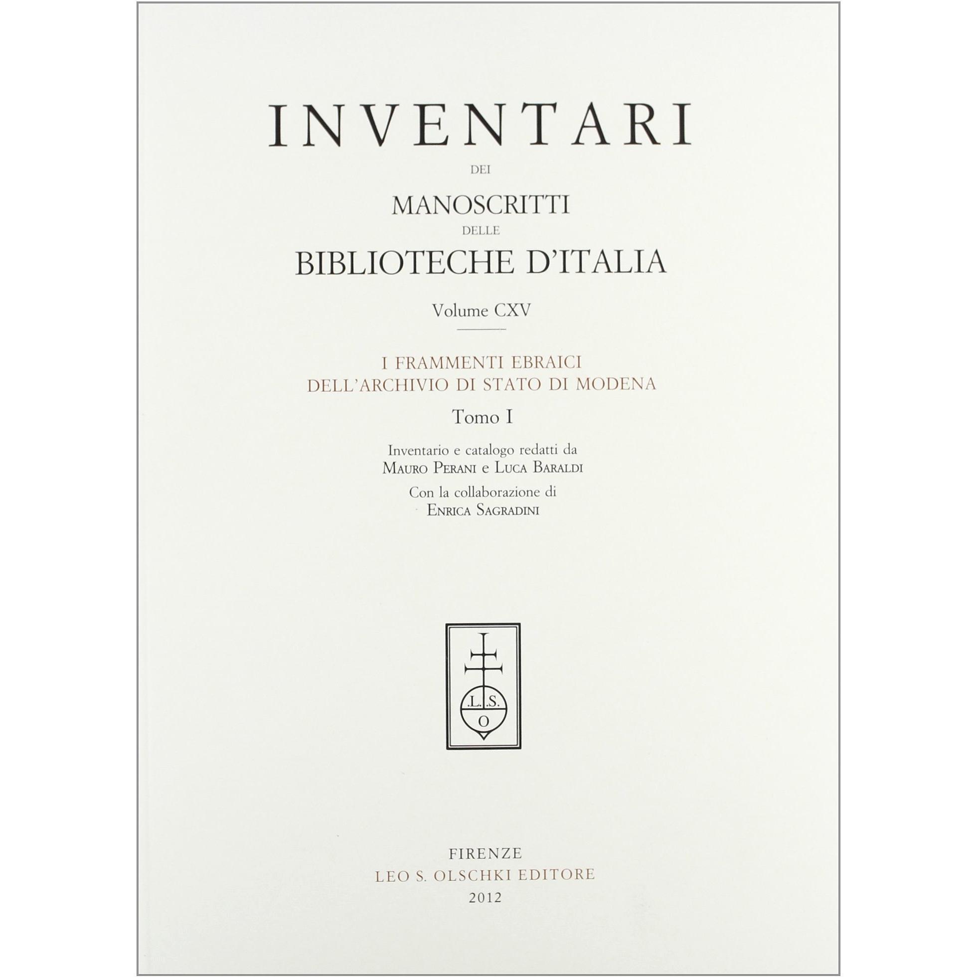 Inventari dei manoscritti delle biblioteche d'Italia. I frammenti ebraici dell'archivio di Stato di Modena (Vol. 115)
